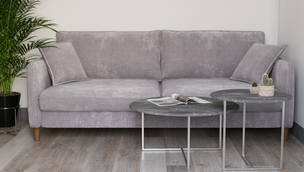 Круглая столешница с влагостойким декоративным покрытием открывает дополнительные возможности для комфортного досуга или работы дома. Отсутствие острых углов подчеркнет безопасность и гармоничность интерьера. Актуальный в дизайне цвет «серый мрамор» добавит солидности и благородных акцентов.