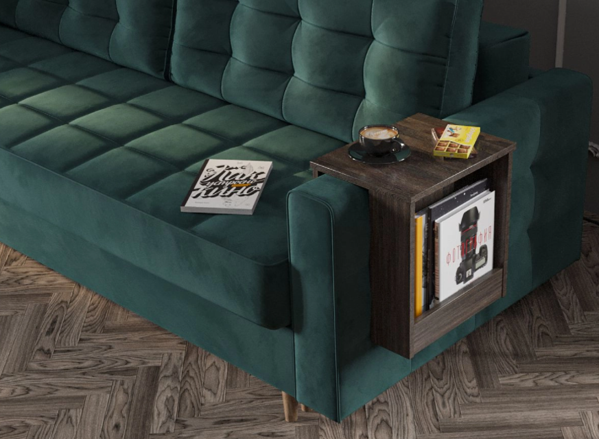 Стол Bardi – стильный и компактный, с полкой для хранения книг, газет и журналов. Выполняет функцию накладки на подлокотник дивана или кресла.