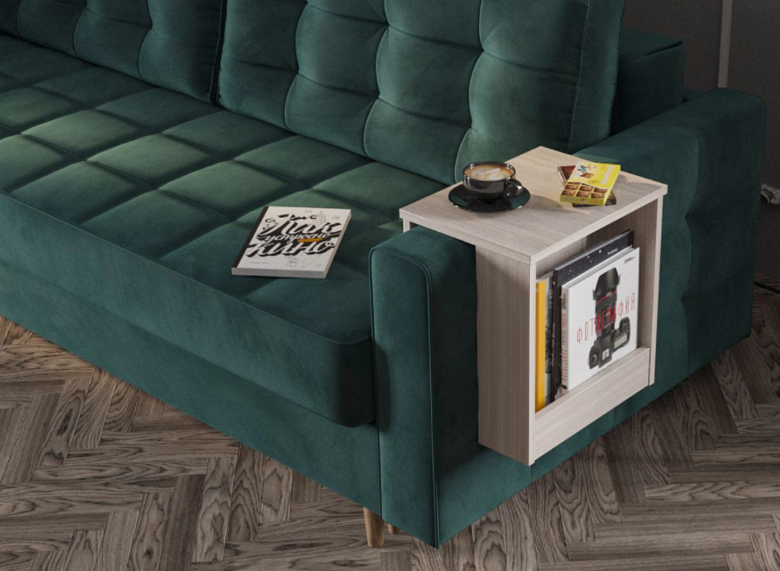 Стол Bardi – стильный и компактный, с полкой для хранения книг, газет и журналов. Выполняет функцию накладки на подлокотник дивана или кресла.