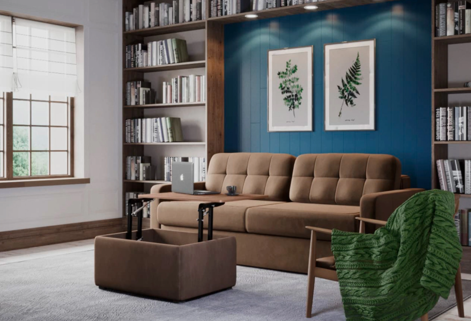 - для единого стиля в интерьере можно выбрать цвет столешницы и ткань периметра журнального стола под цвет дивана Askona;