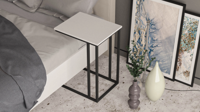Приставной журнальный стол Odin для кровати – стильный, компактный, на надежной металлической раме. Устойчивый и функциональный, Odin безупречен для спальни: металл не выделяет вредных веществ, не боится температурных изменений, влаги и ультрафиолета.