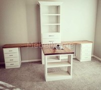 Рабочий стол с двумя тумбами и комбинированной надстройкой с полками и шкафчиками.