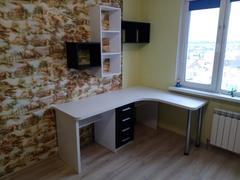 Угловой широкий стол. Подсветка полок. Можно дополнить кроватью-трансформер.