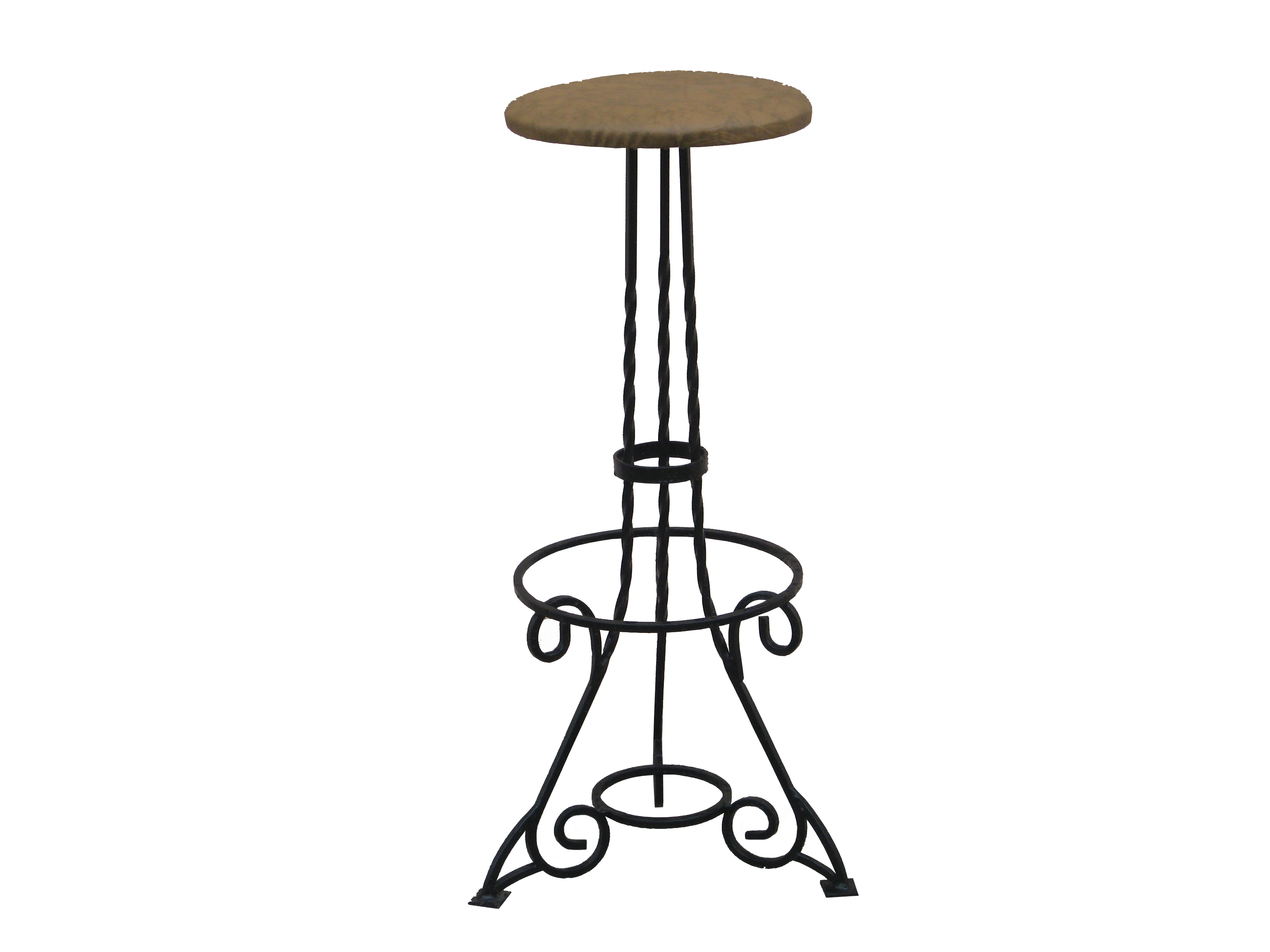 код 86271Высокая банкетка с круглым сиденьем, обтянутым эко-кожей, и кованным основанием с завитками на ножках.