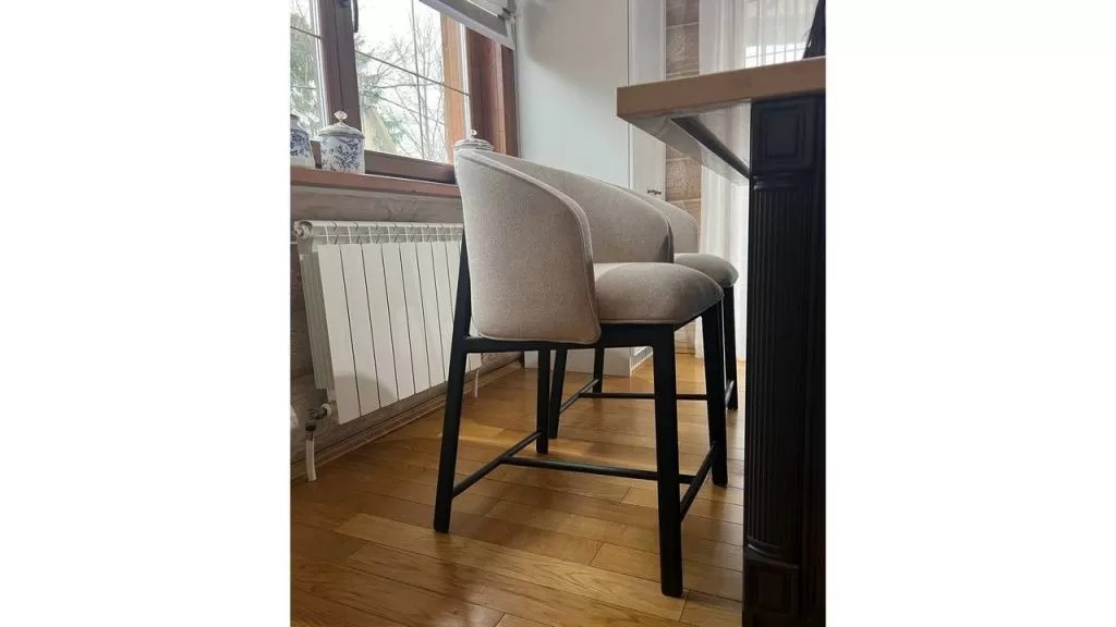 В качестве основы для мягкого сидения и спинки барного стула использован плотный поролон толщиной 5 см и 2 см соответственно, обтянутый высококачественной износостойкой тканью.