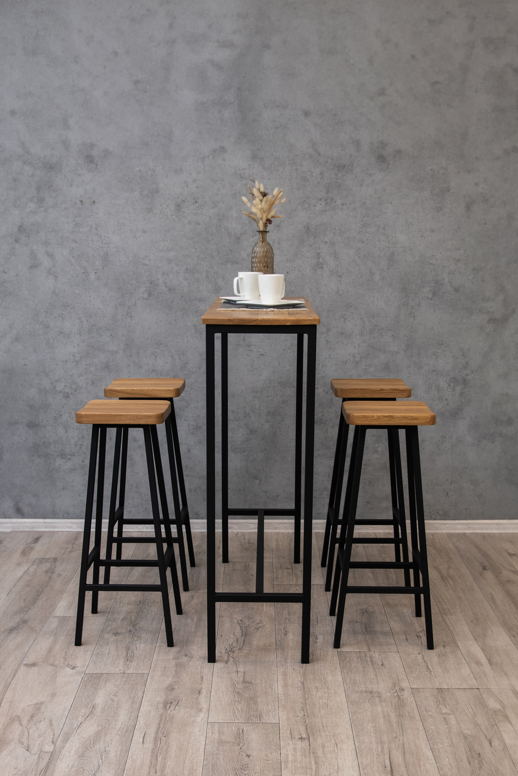 код 142241Высокий деревянный табурет, высота 78 см. Материал: цельноламельный массив дуба.