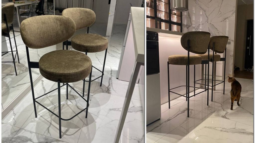 Барный и полубарный стул "Ника" для кухни с мягкой спинкой на металлическом каркасе.