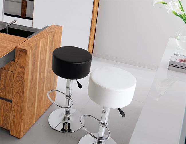 Для большего удобства стул комплектуется хромированной подставкой для ног и возможностью регулирования высоты. Ровная круглая форма сиденья смотрится изящно и лаконично, поэтому будет сочетаться как в интерьере в стиле «минимализ», так и классическом современном.