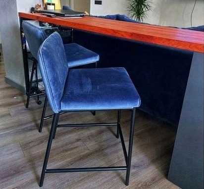 Каркас барного и полубарного стула "Сильвестр" изготовлен из круглой тонкостенной стали с защитным полимерным покрытием, черного или серого цвета. Высота посадки cоставляет для полубарного стула 65 см, барного - 80 см. Каркас стула рассчитан на нагрузку до 150 кг и гарантирует хорошую устойчивость к опрокидыванию.
