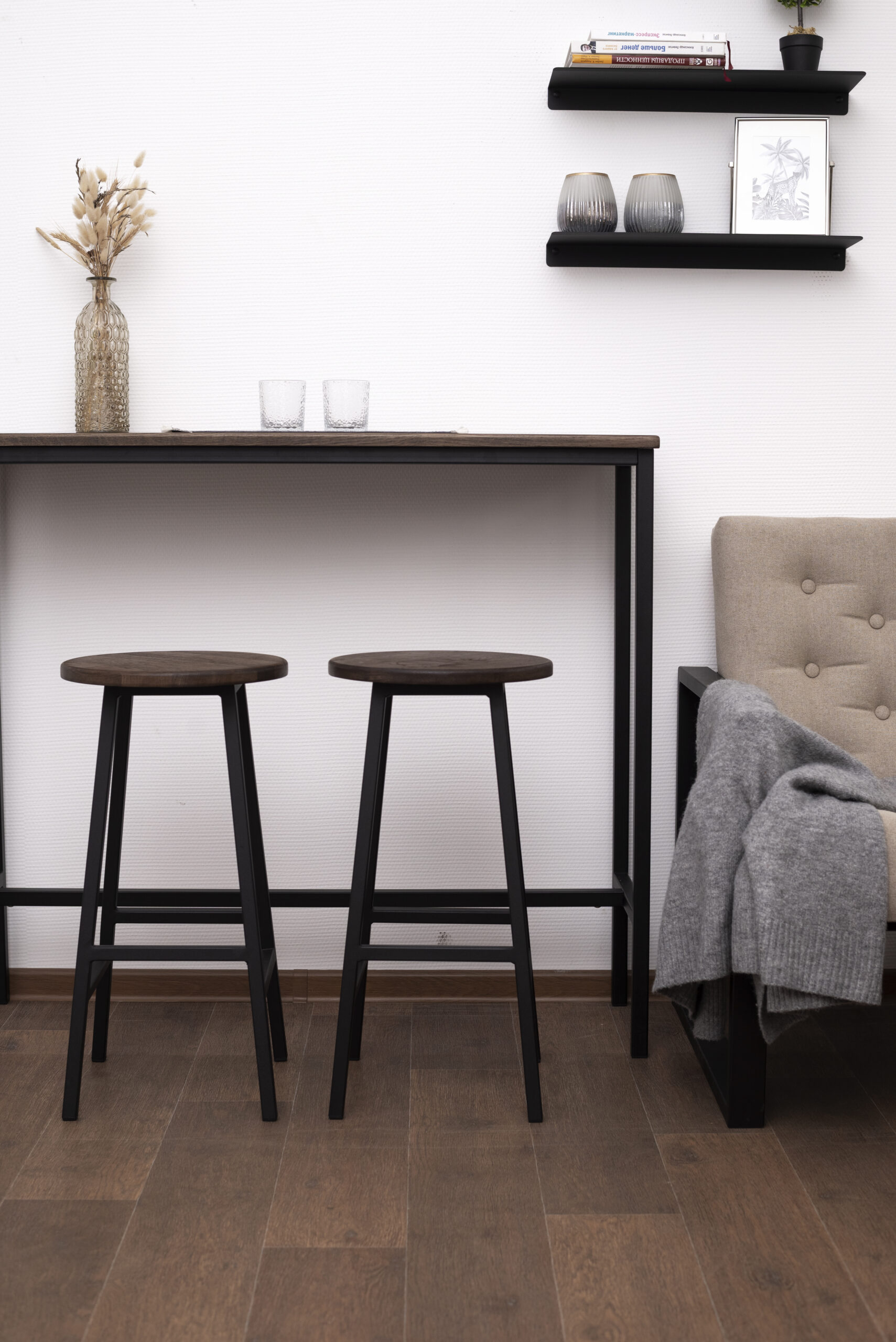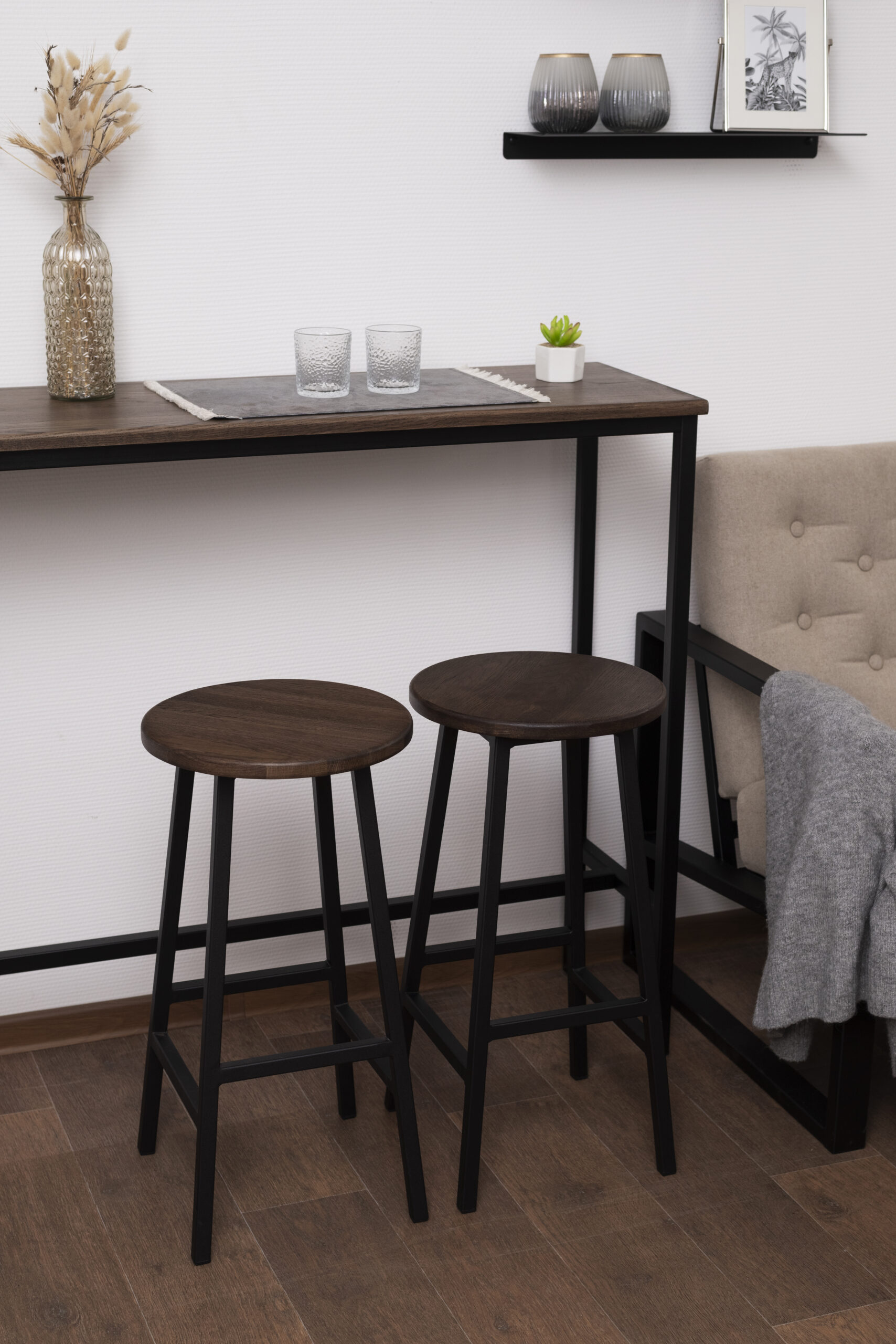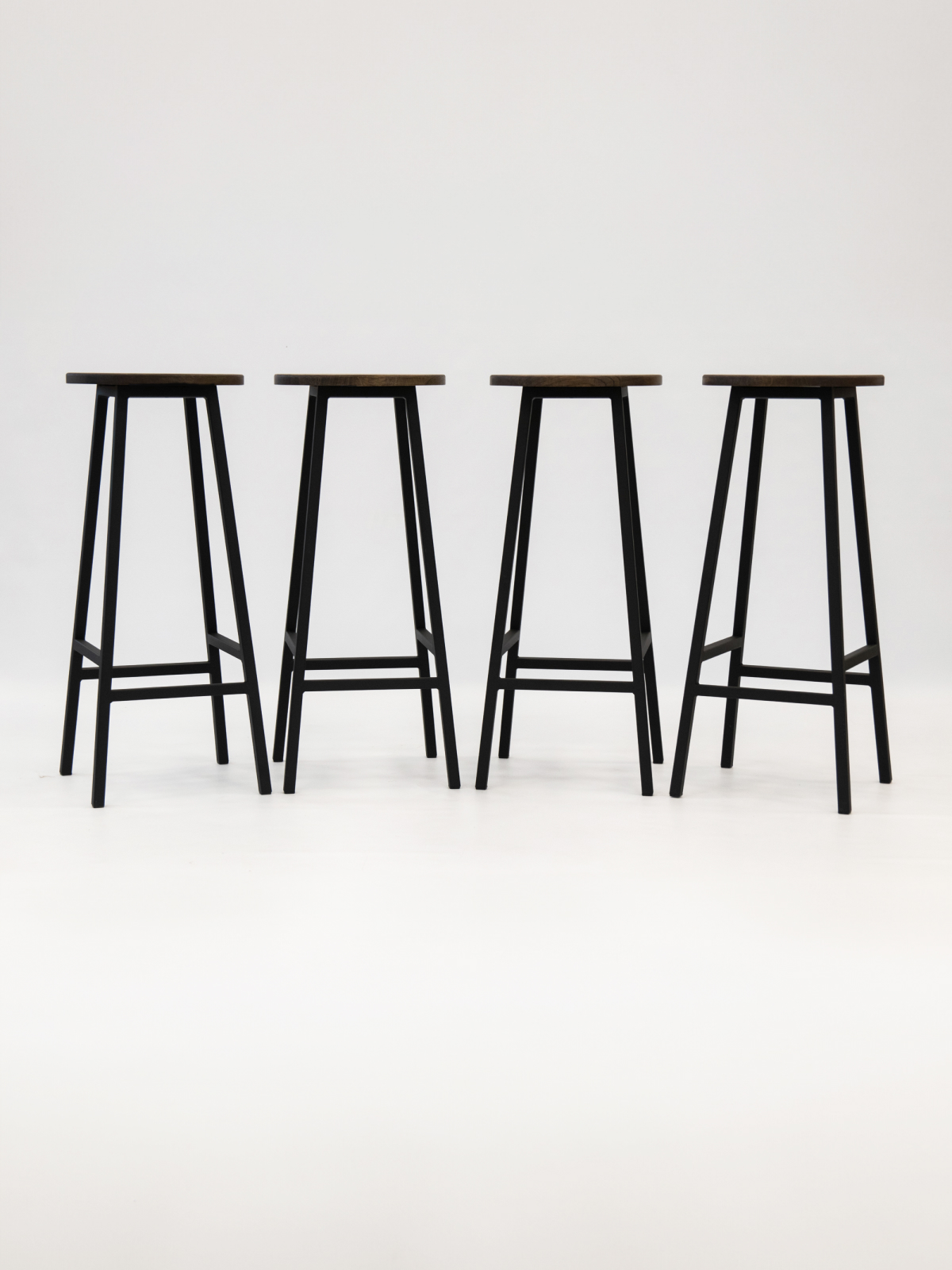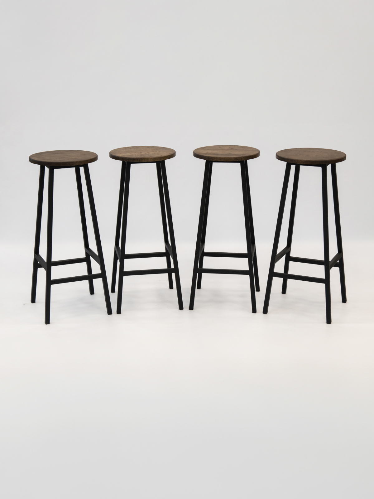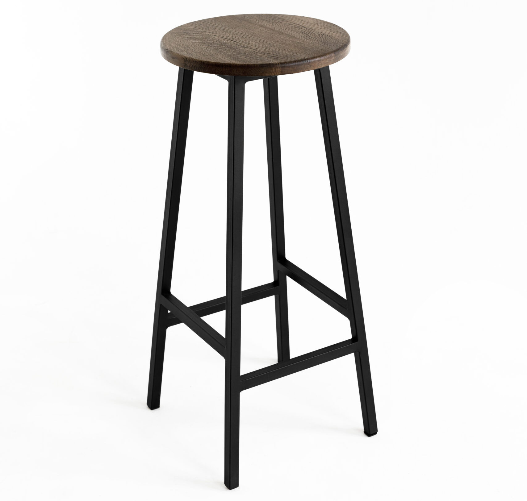 Высокий деревянный табурет, высота 76 см. Материал: цельноламельный массив дуба, металл.