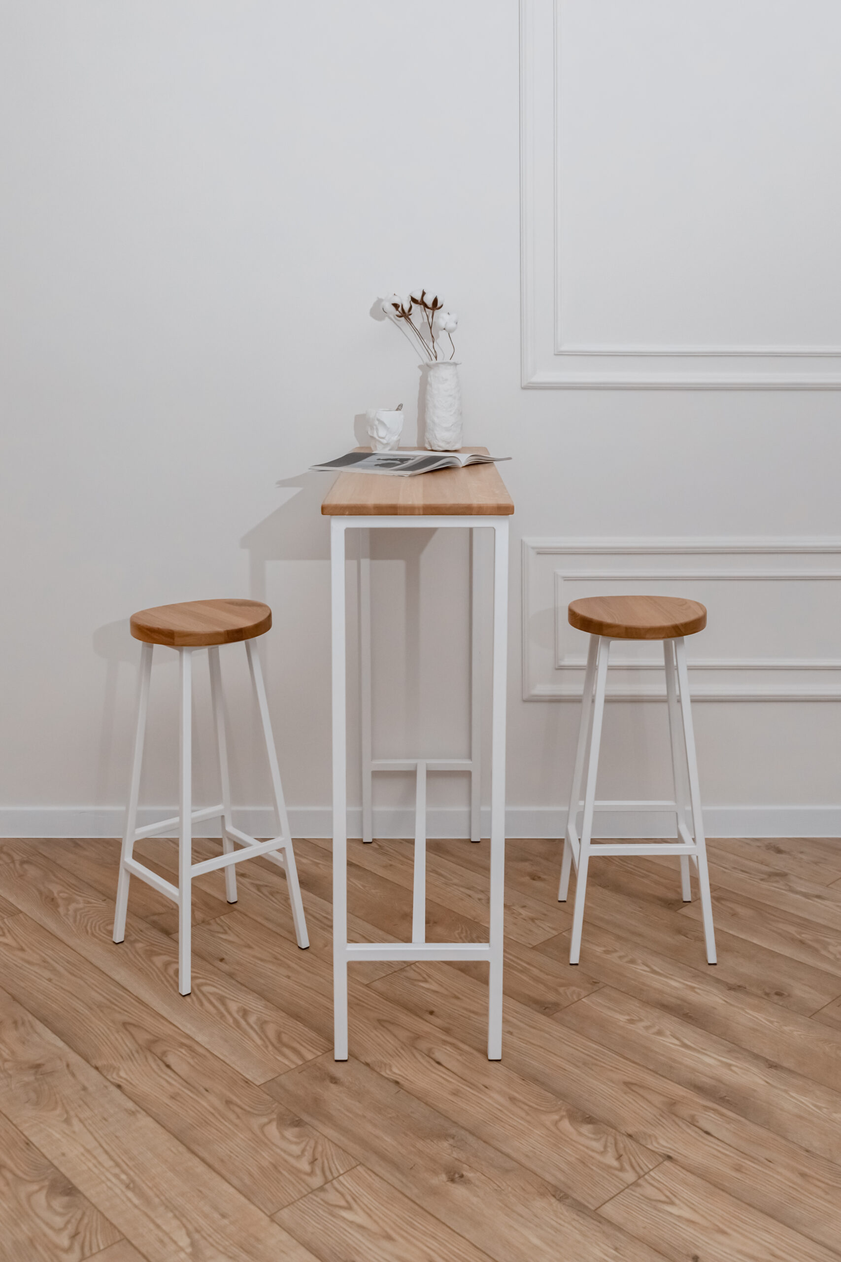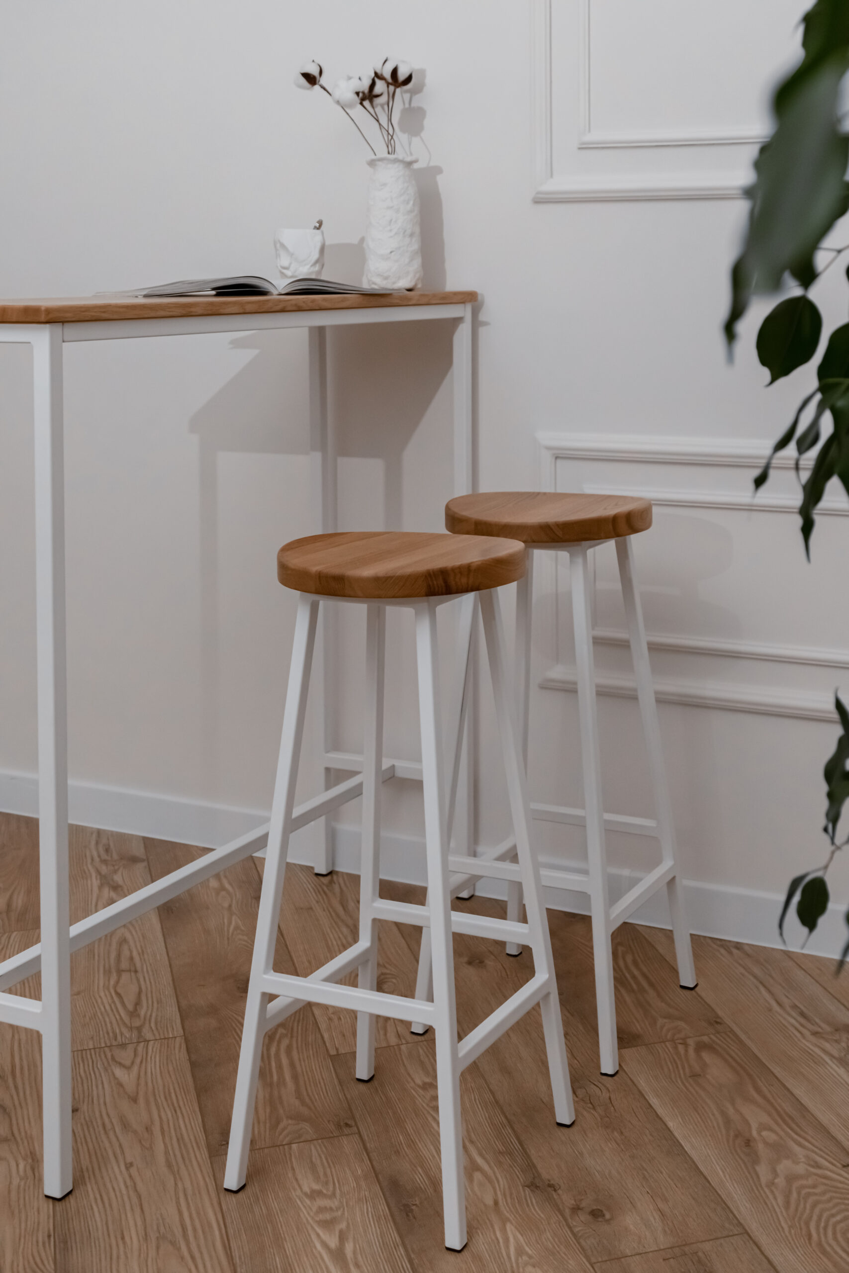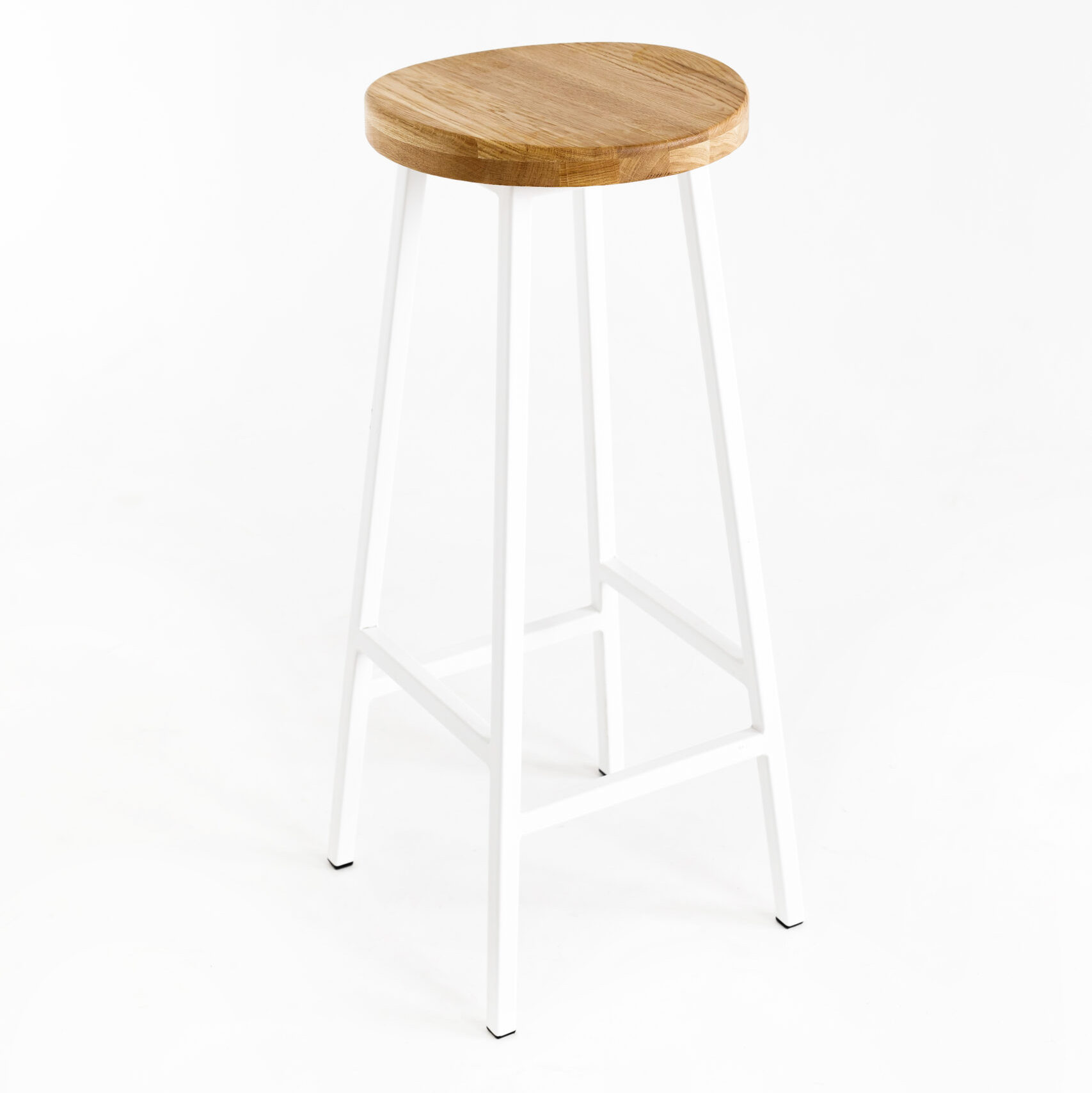 Полубарный табурет, высота 65 см. Материал: цельноламельный массив дуба, металл.