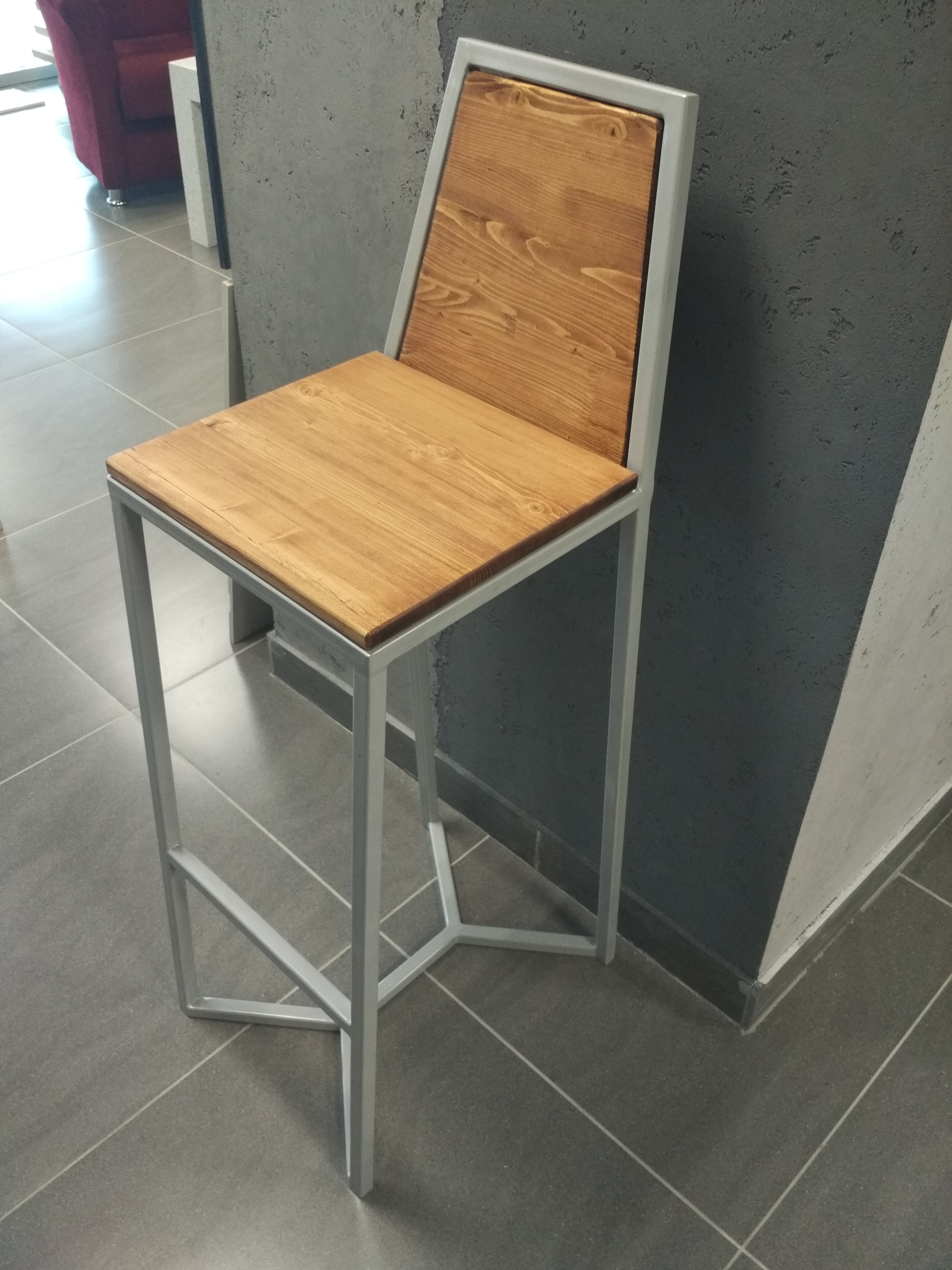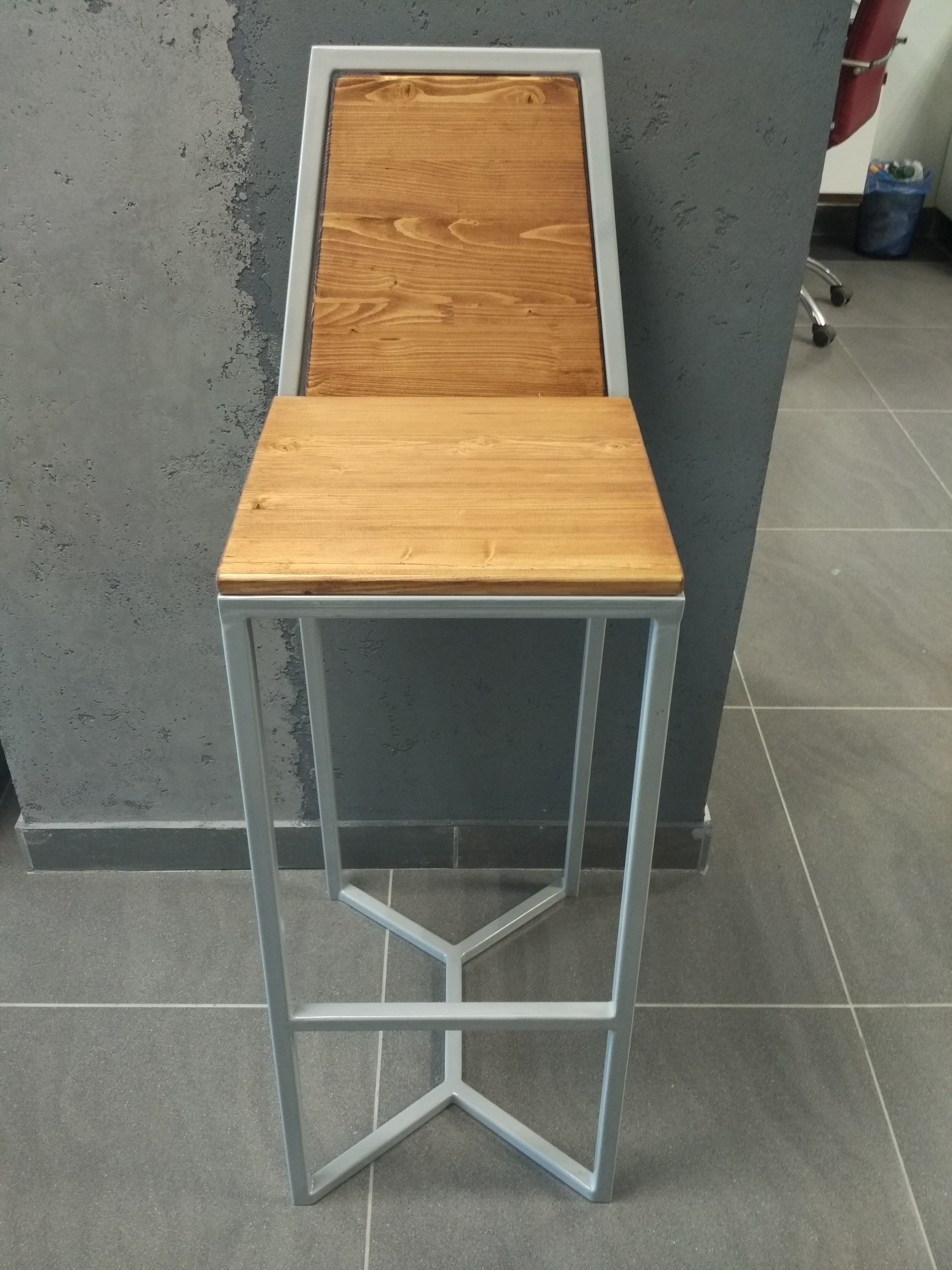 Высокий деревянный табурет, высота 78 см. Материал: цельноламельный массив дуба, металл.