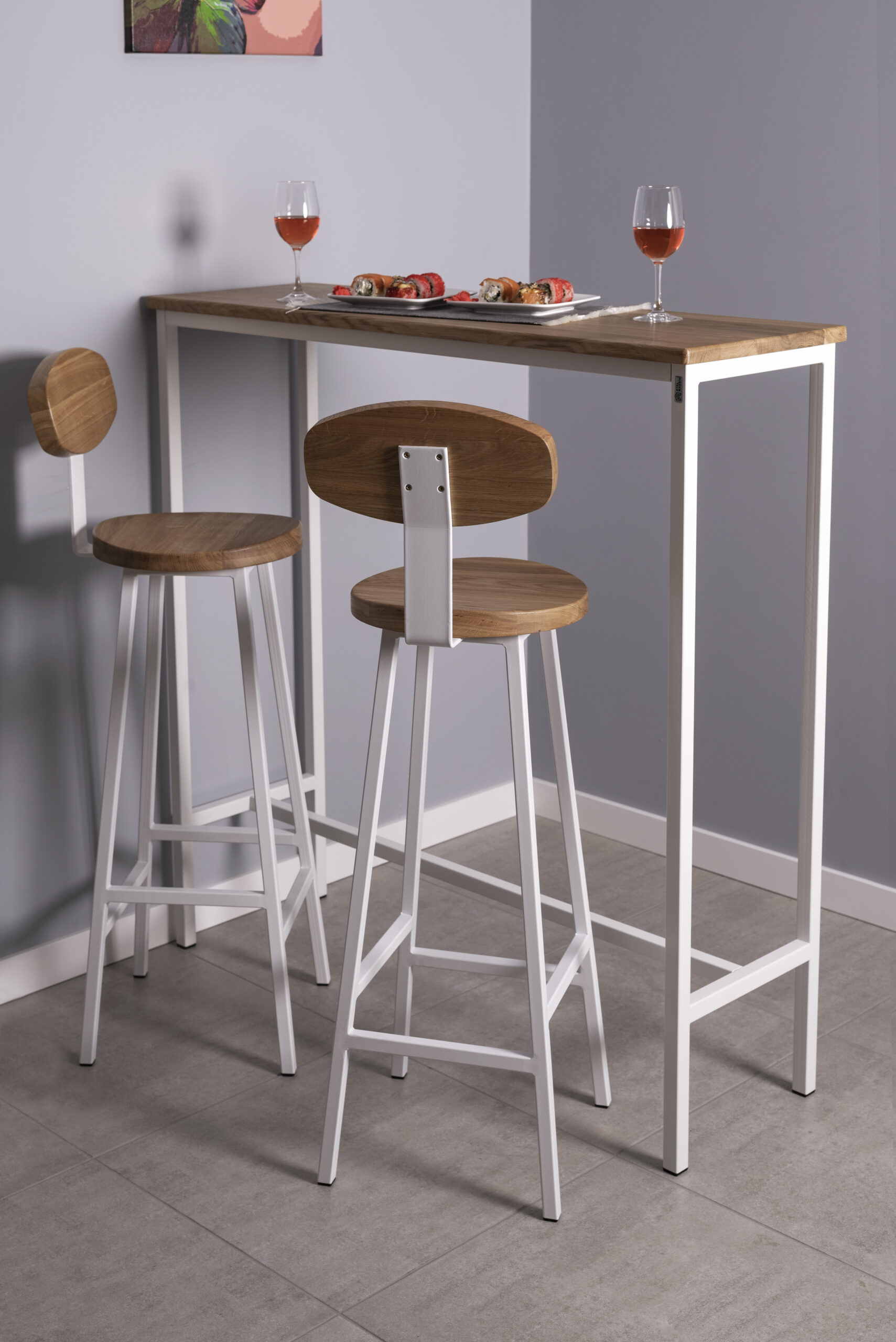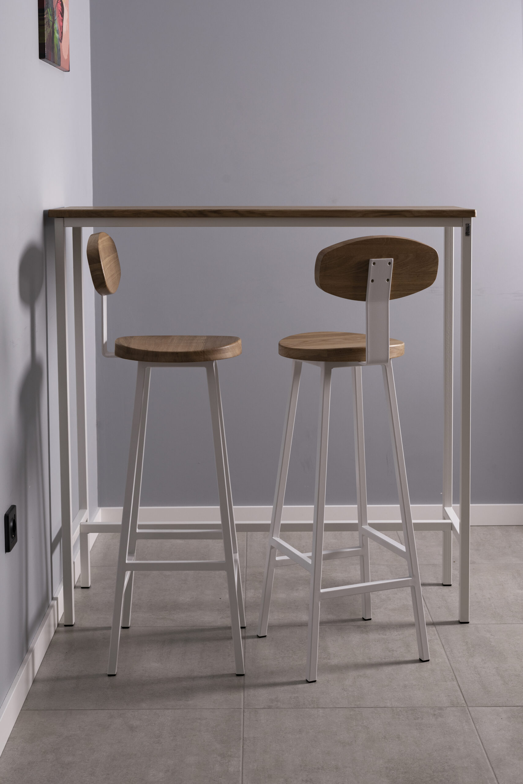 Высокий деревянный табурет, высота 78 см. Материал: цельноламельный массив дуба.