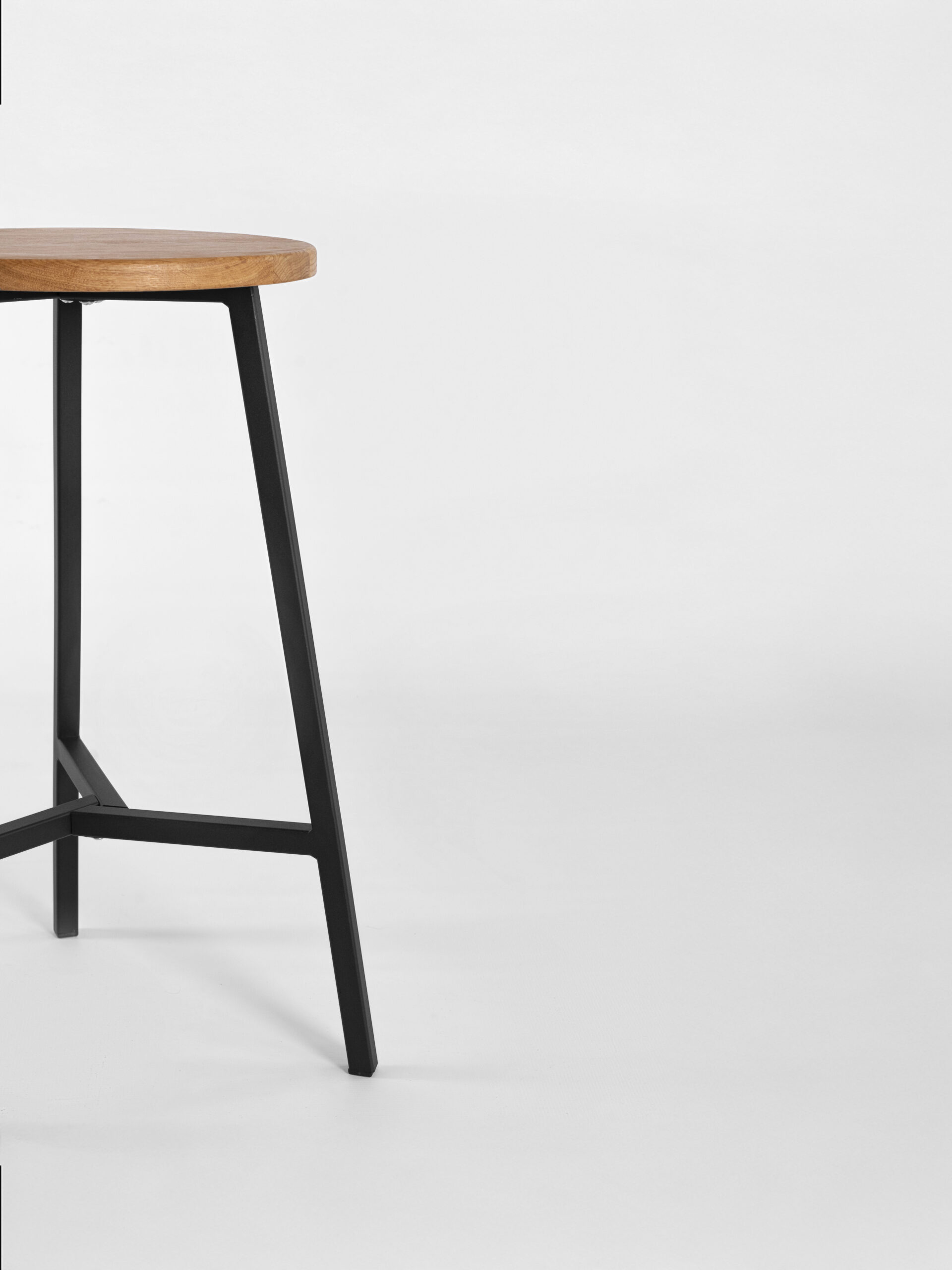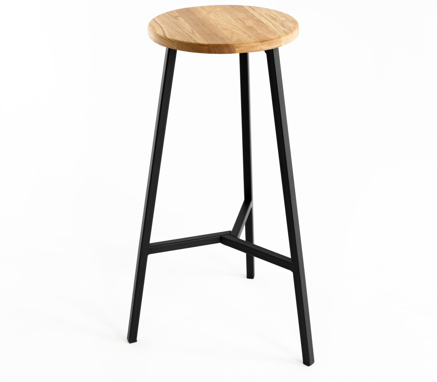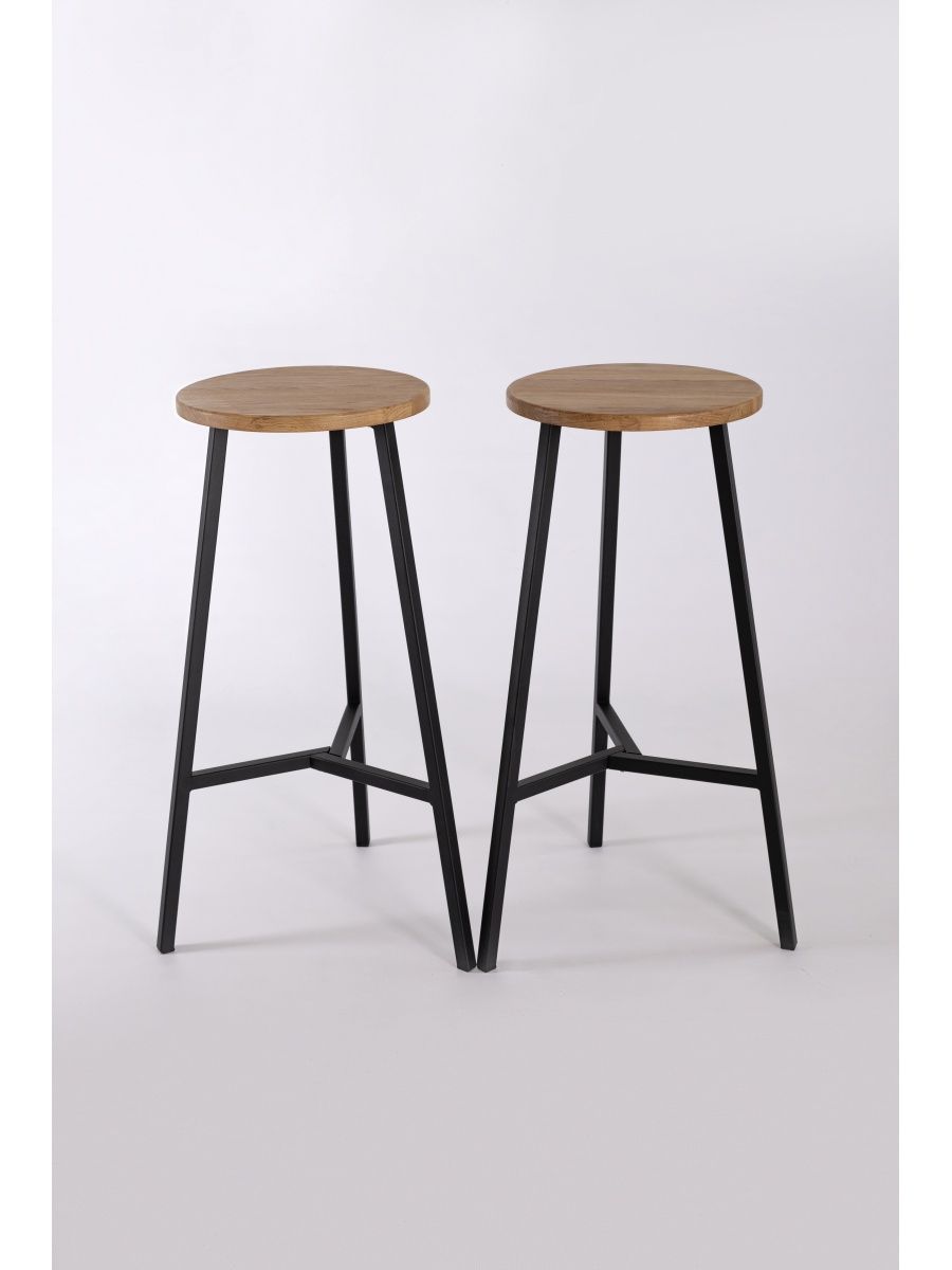 Полубарный табурет, высота 63 см. Материал: цельноламельный массив дуба, металл.