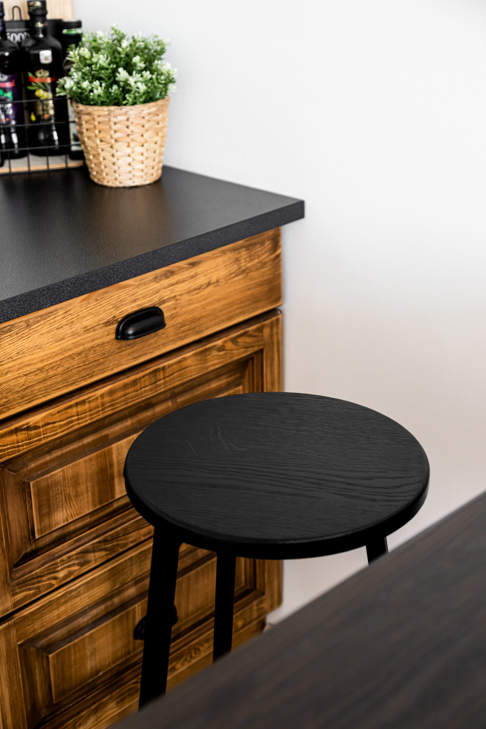 Полубарный стул «BUTTON-65» (мореный, черный)