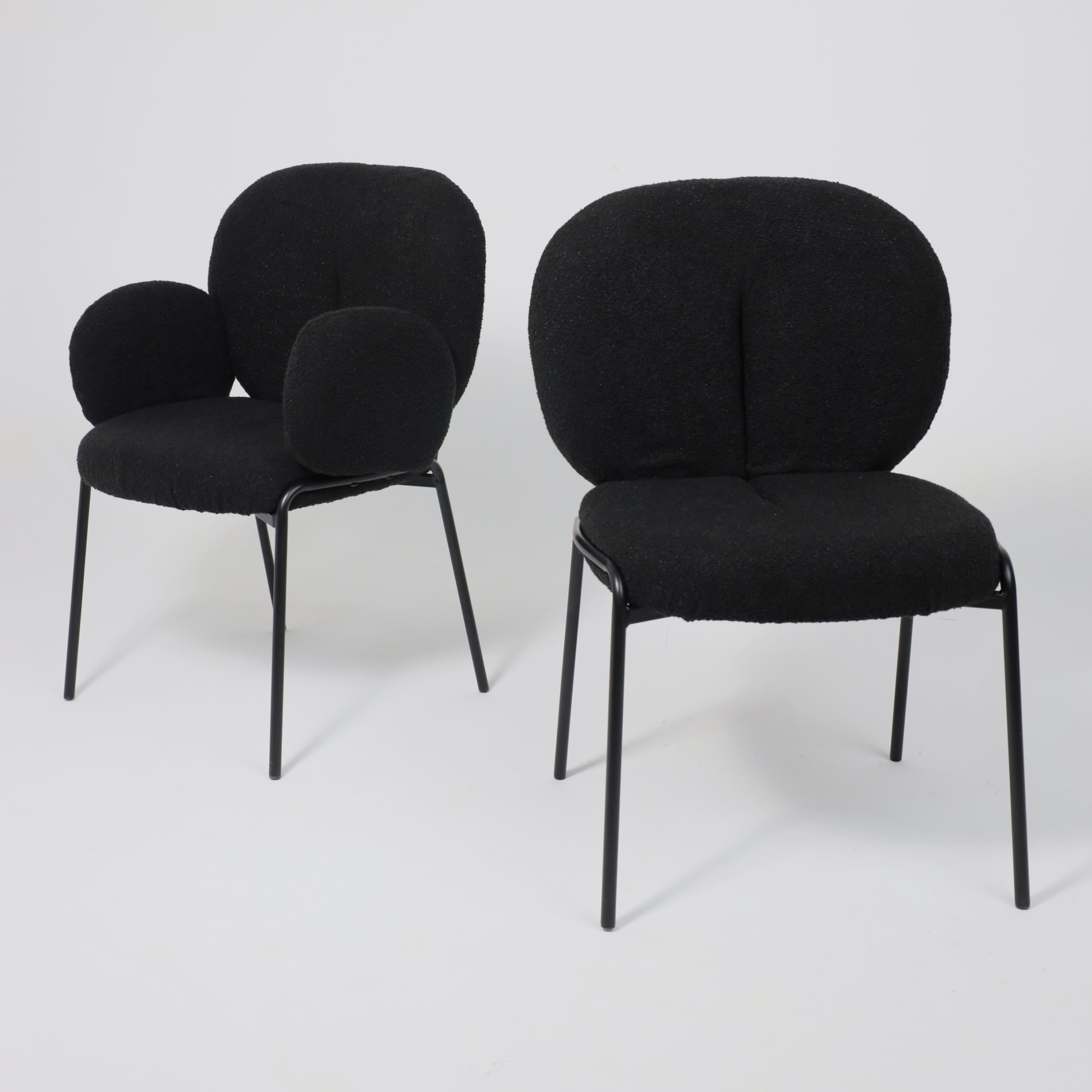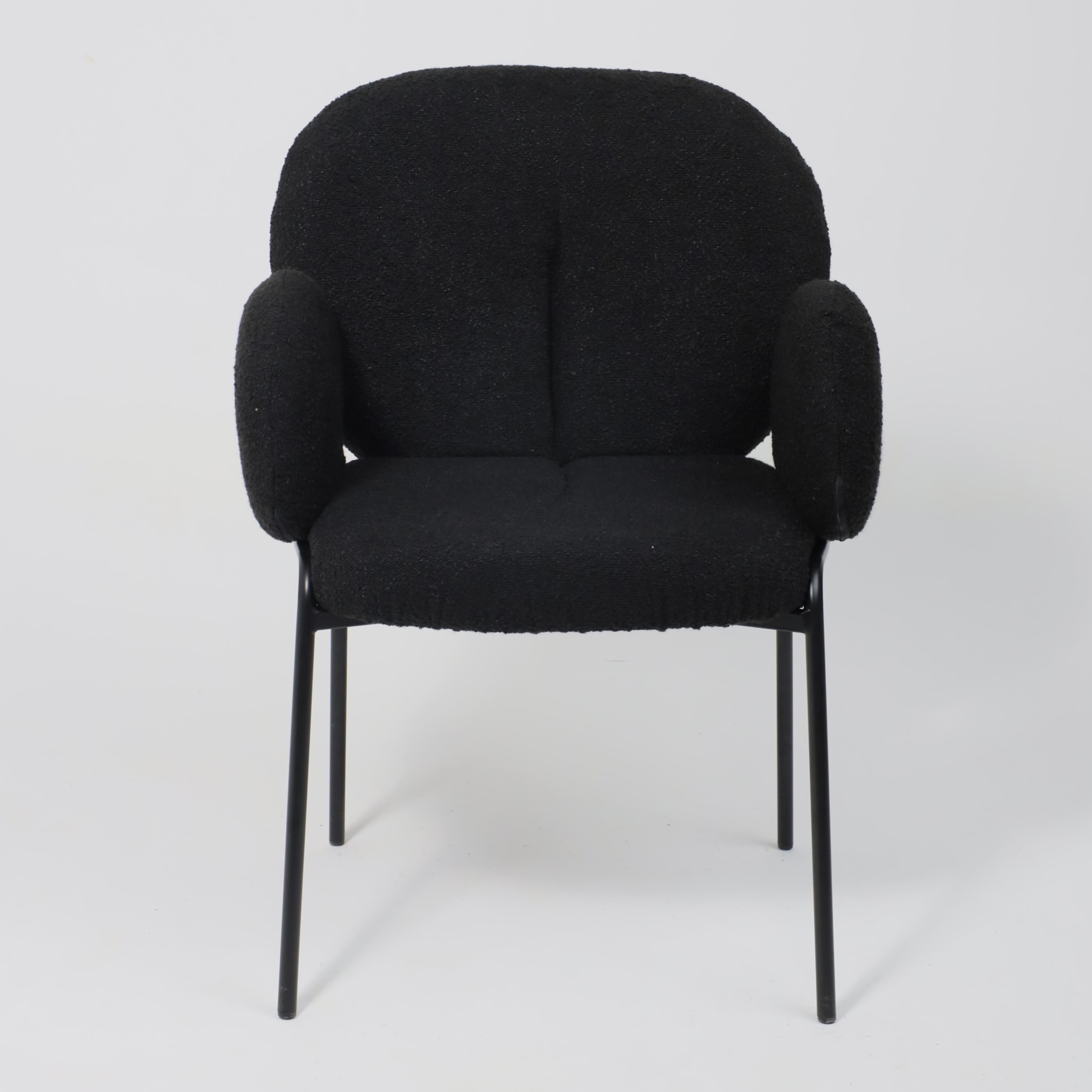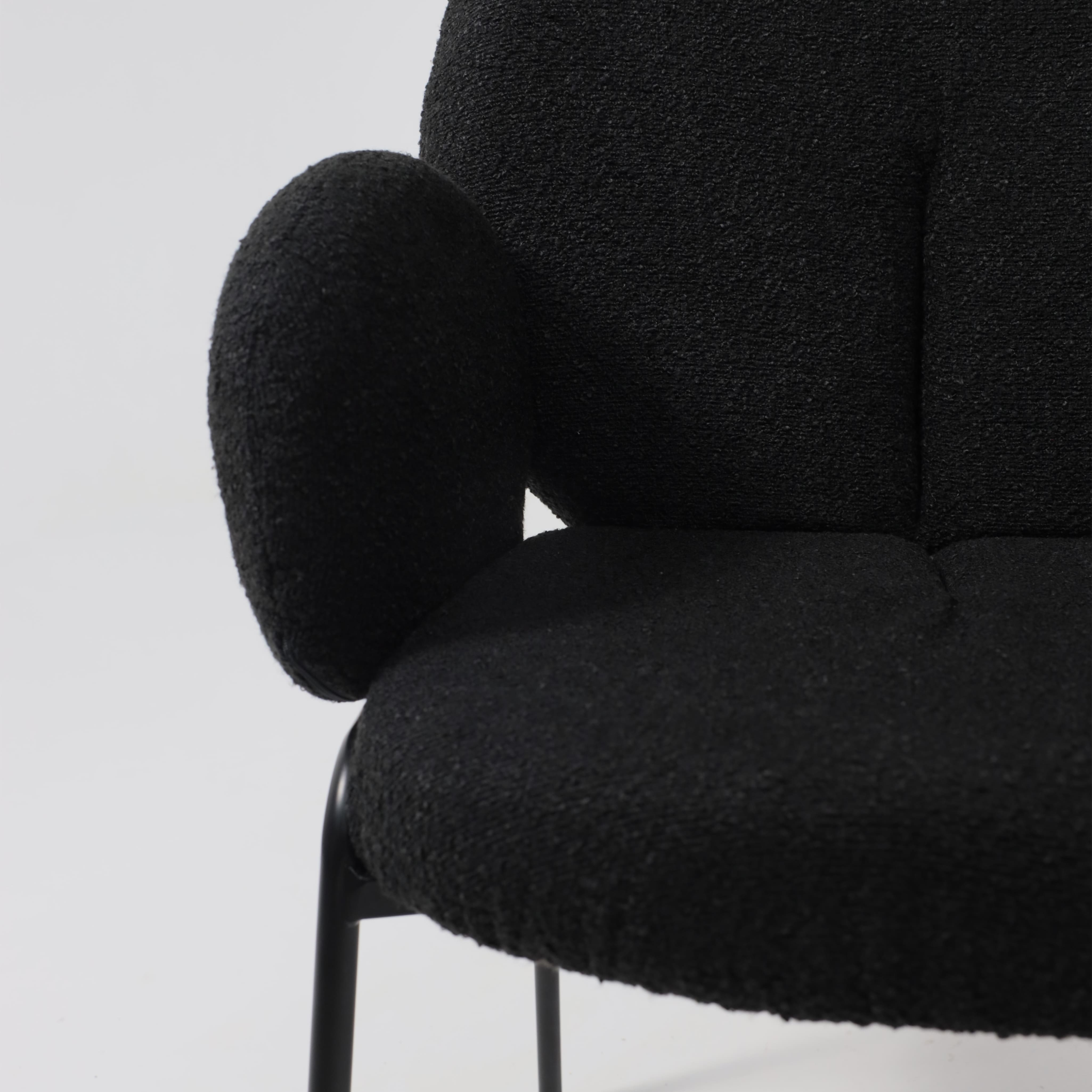 - Материал сиденья и спинки: ткань букле, цвет — чёрный.