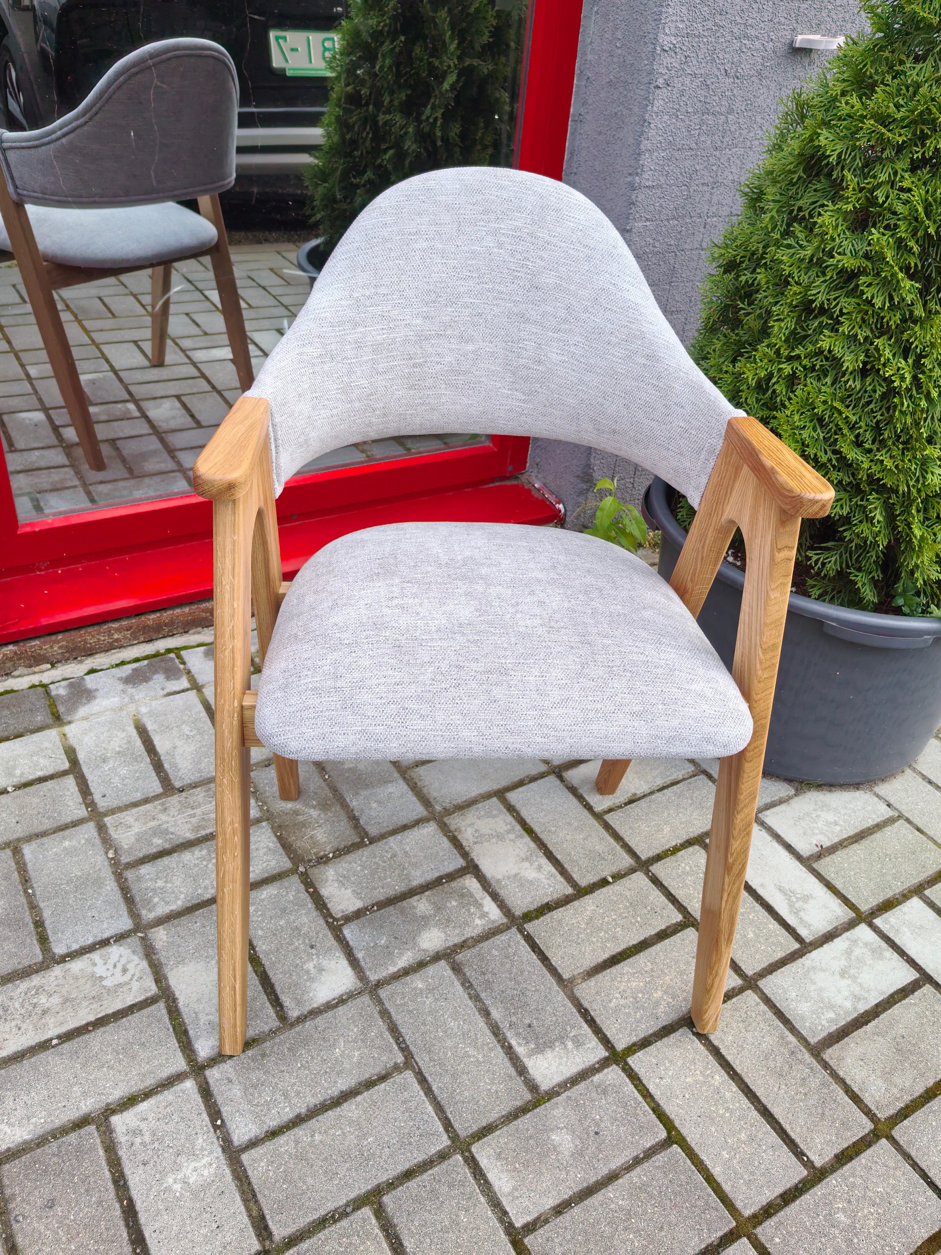 Каркас выполнен из массива дуба, который отличается высокой прочностью и долговечностью, что делает стул надёжным.