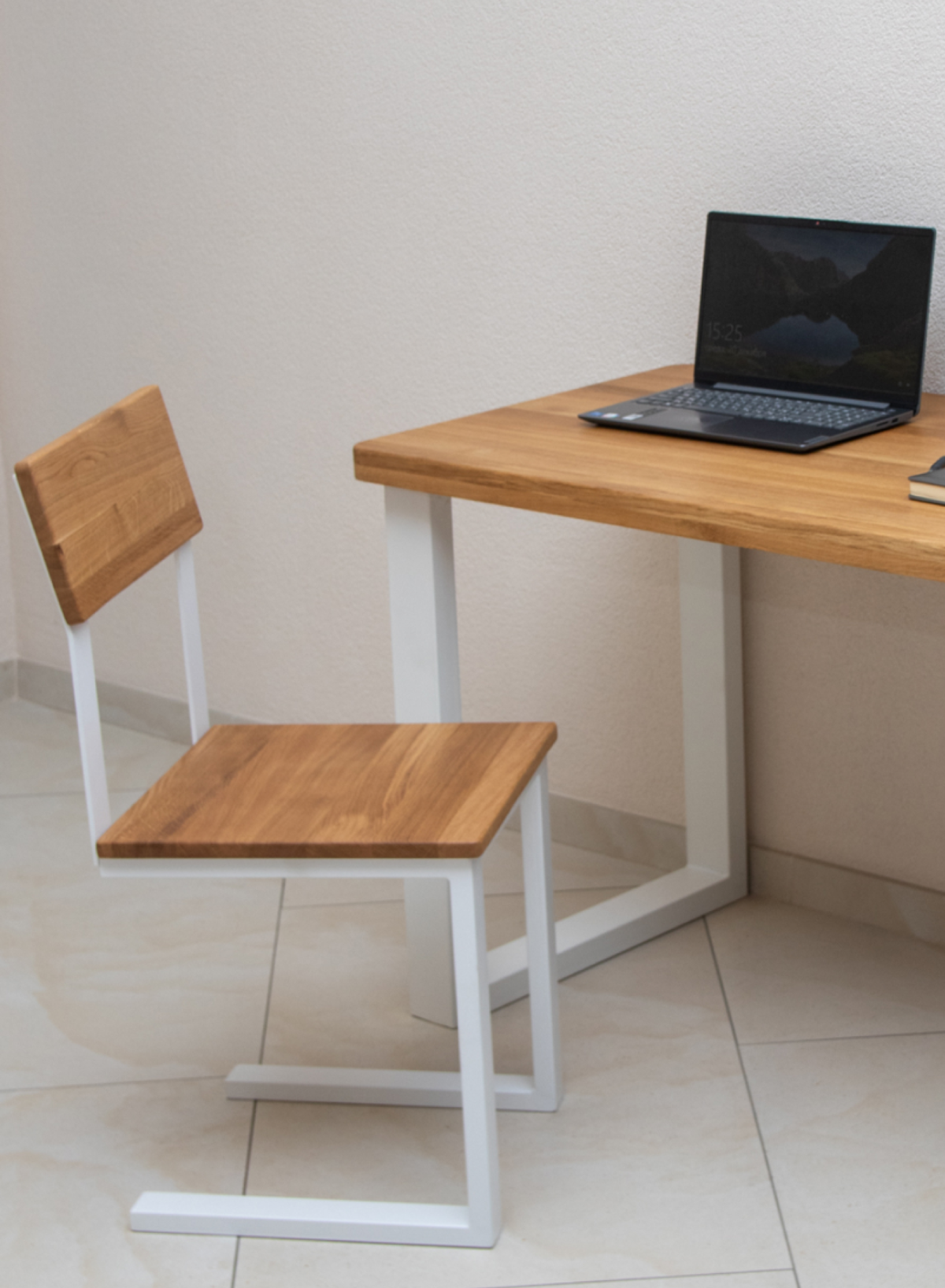 код 141063Стул со спинкой, высота 88 см. Материал: цельноламельный массив дуба, металл.