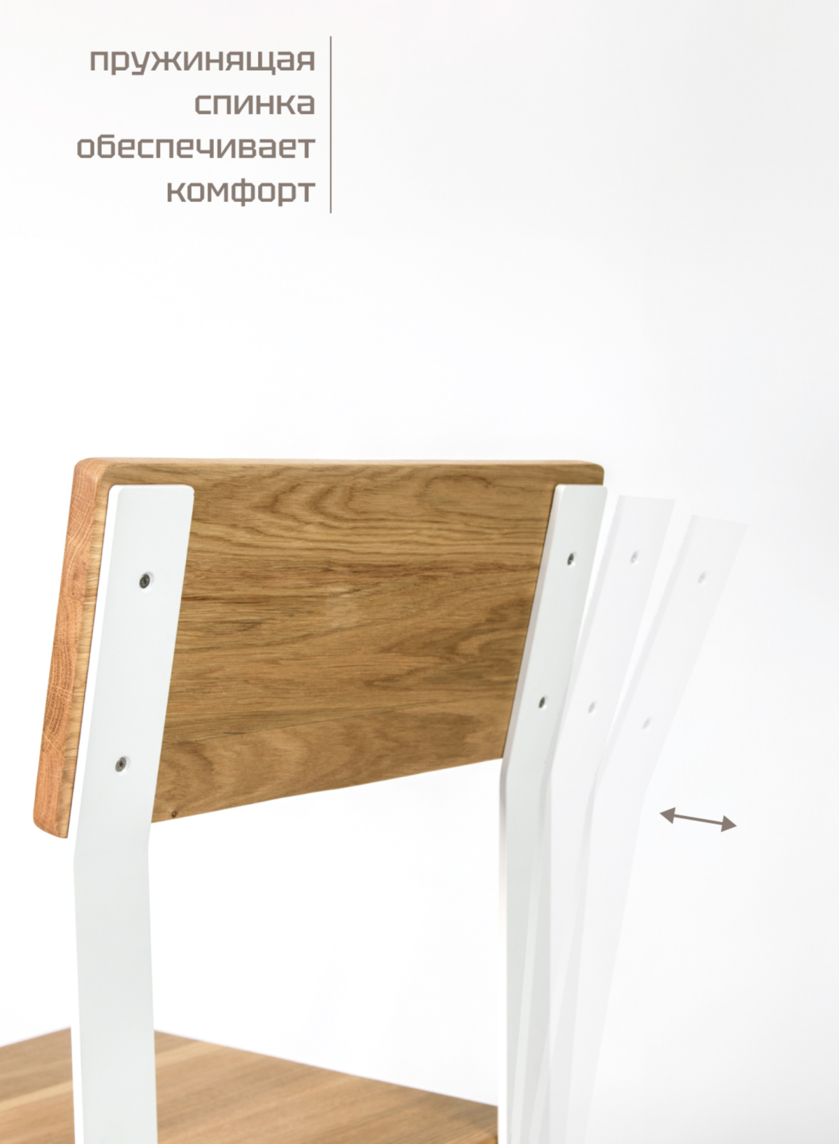 Полимерное покрытие подстолья — устойчиво к воде, царапинам и появлению ржавчины. На ножках стула установлены пластиковые заглушки, которые защищают пол от царапин и черных следов. Массив дуба, используемый для изготовления спинки и сиденья — приятный на ощупь материал, покрытый двумя слоями итальянского масла Borma и специальным воском, которые позволят стулу сохранить свой первоначальный вид на протяжении длительного времени.