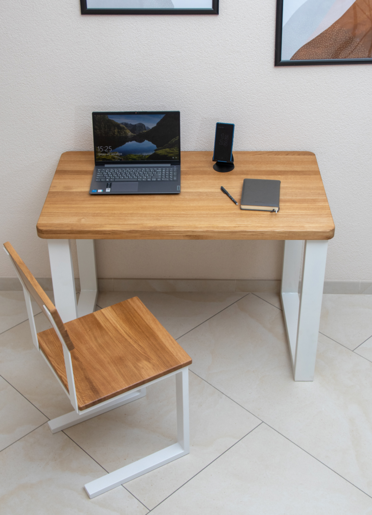 Низкий стул на кухню, высота 45 см. Материал: цельноламельный массив дуба, металл.