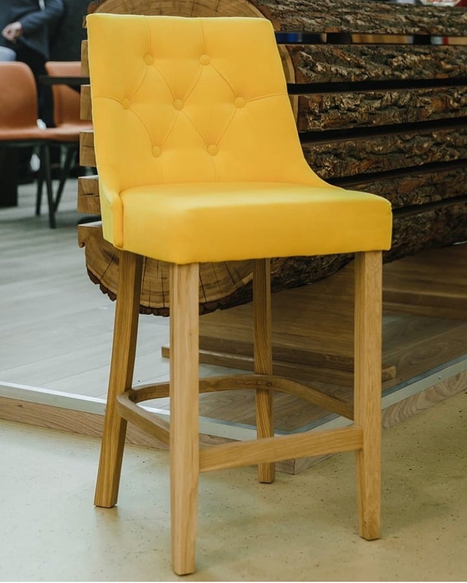 Полубарный стул со спинкой и вогнутым сиденьем. Материал: цельноламельный массив дуба.