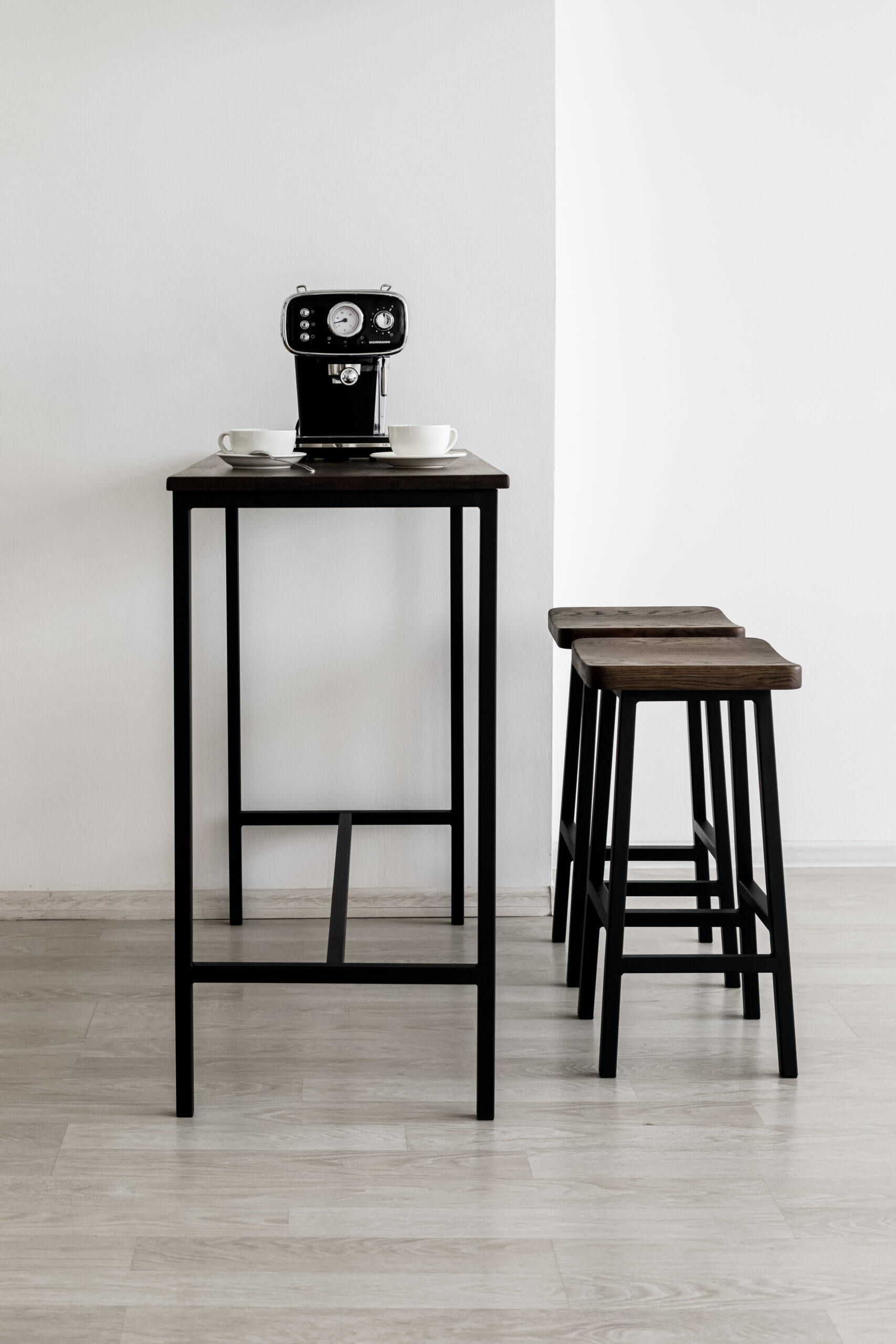 Высокий деревянный табурет, высота 78 см. Материал: цельноламельный массив дуба.