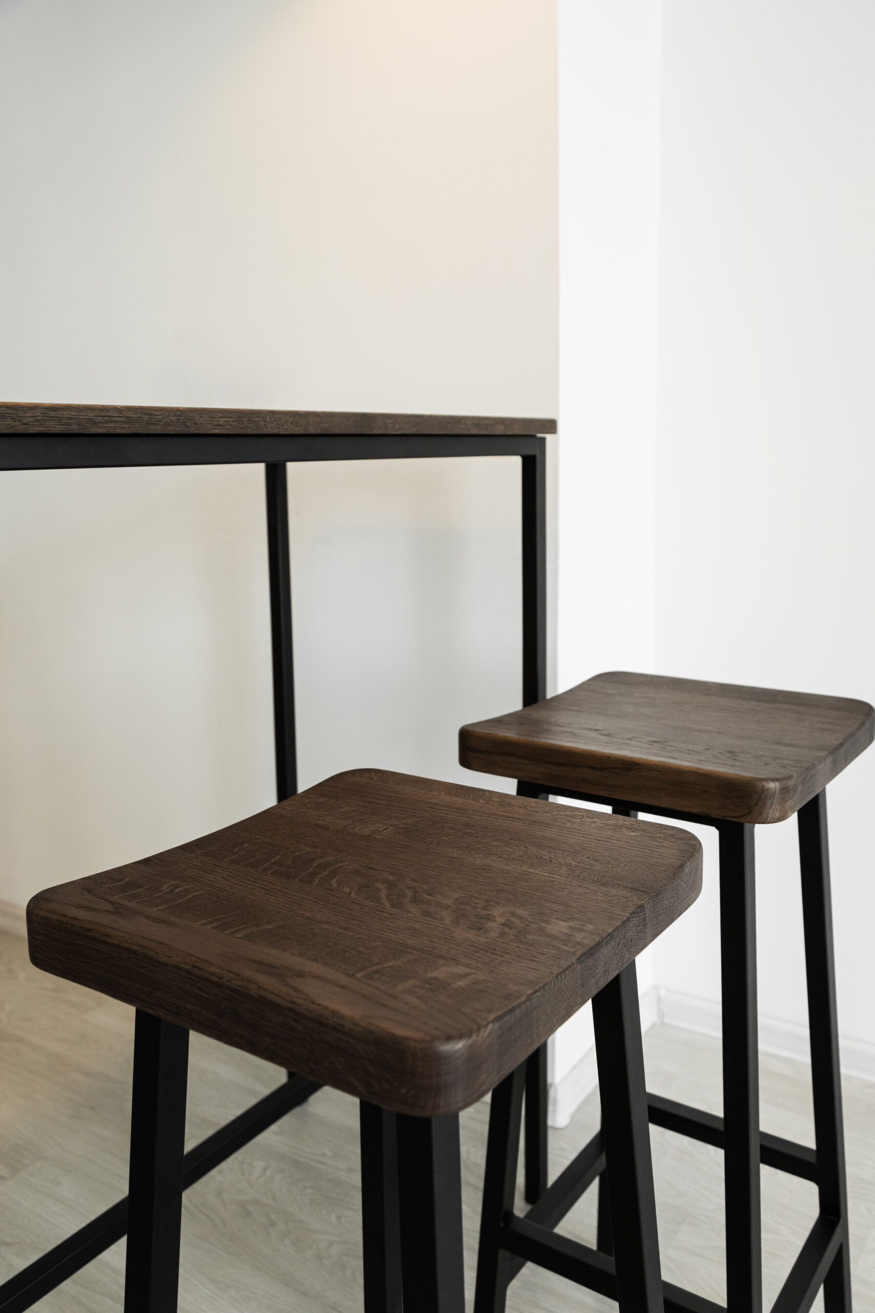 Набор из 2х стульев на кухню, высота 45 см. Материал: цельноламельный массив дуба, металл.