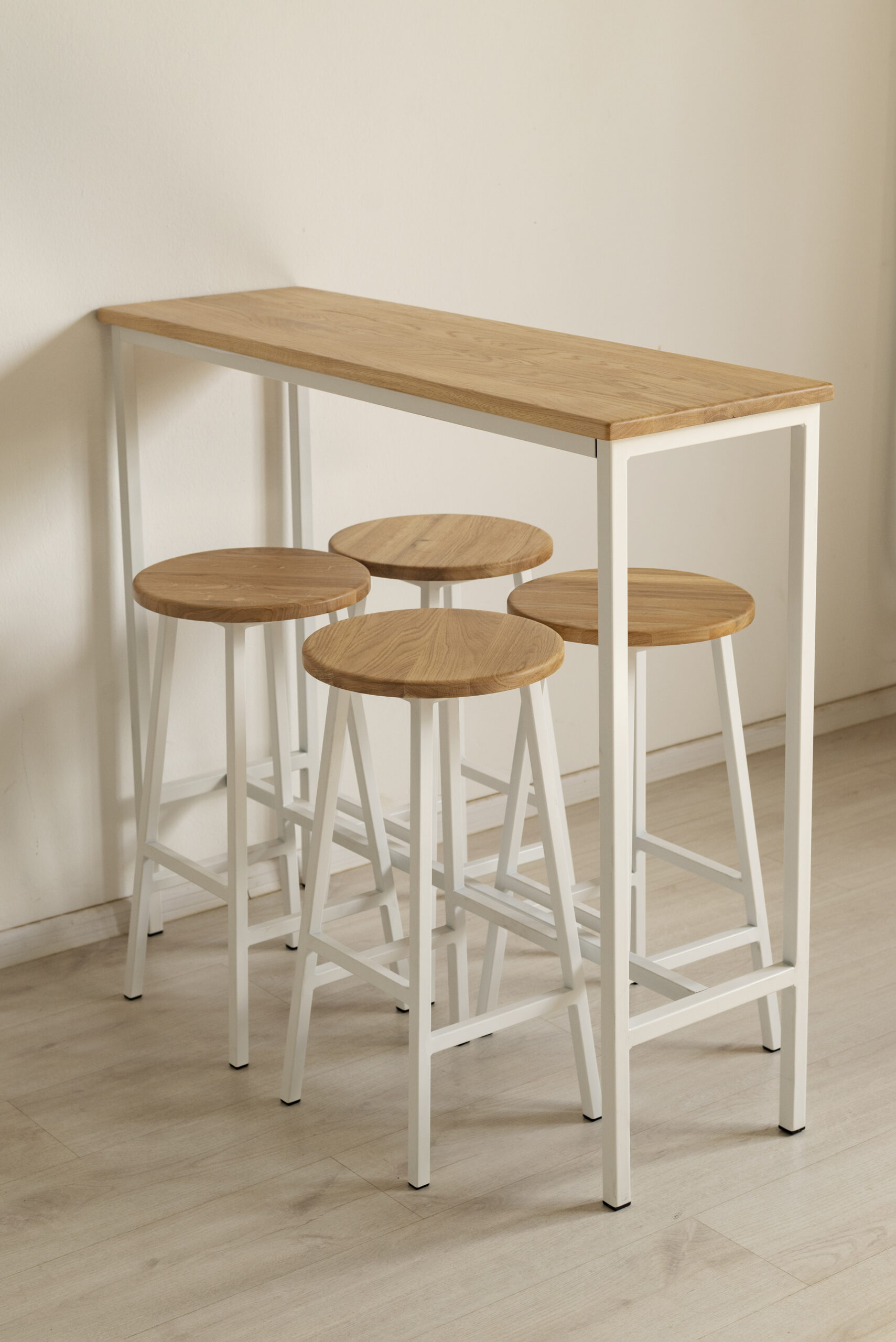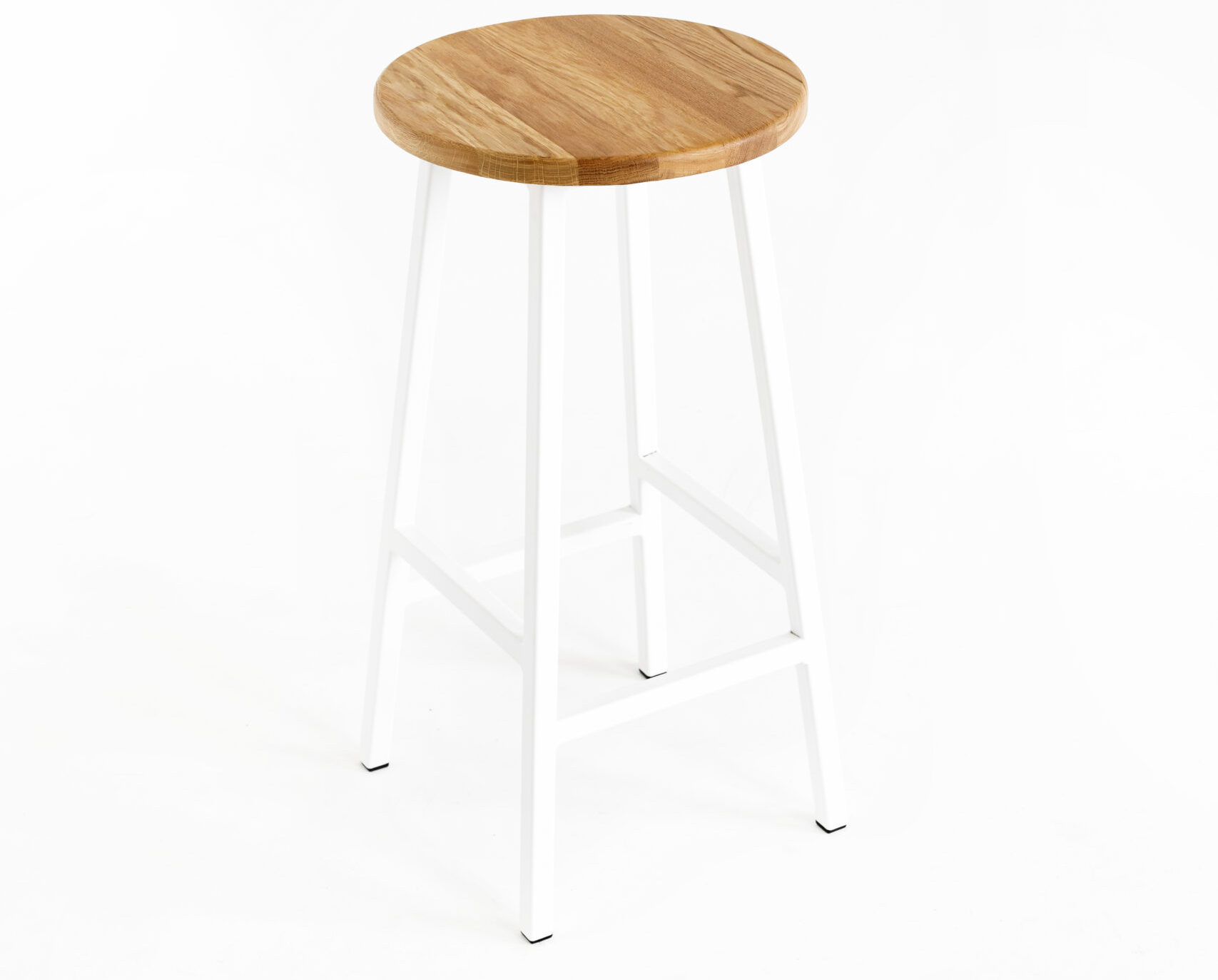 Полубарный табурет, высота 63 см. Материал: цельноламельный массив дуба, металл.