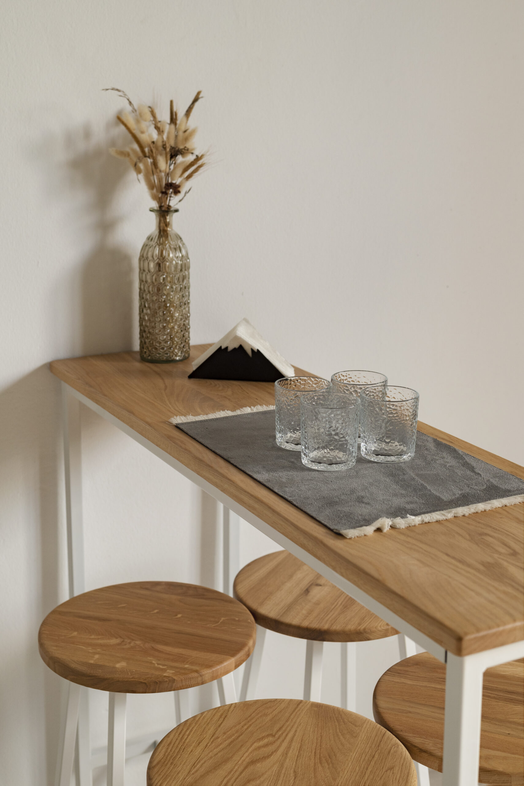 Высокий деревянный табурет, высота 78 см. Материал: цельноламельный массив дуба.