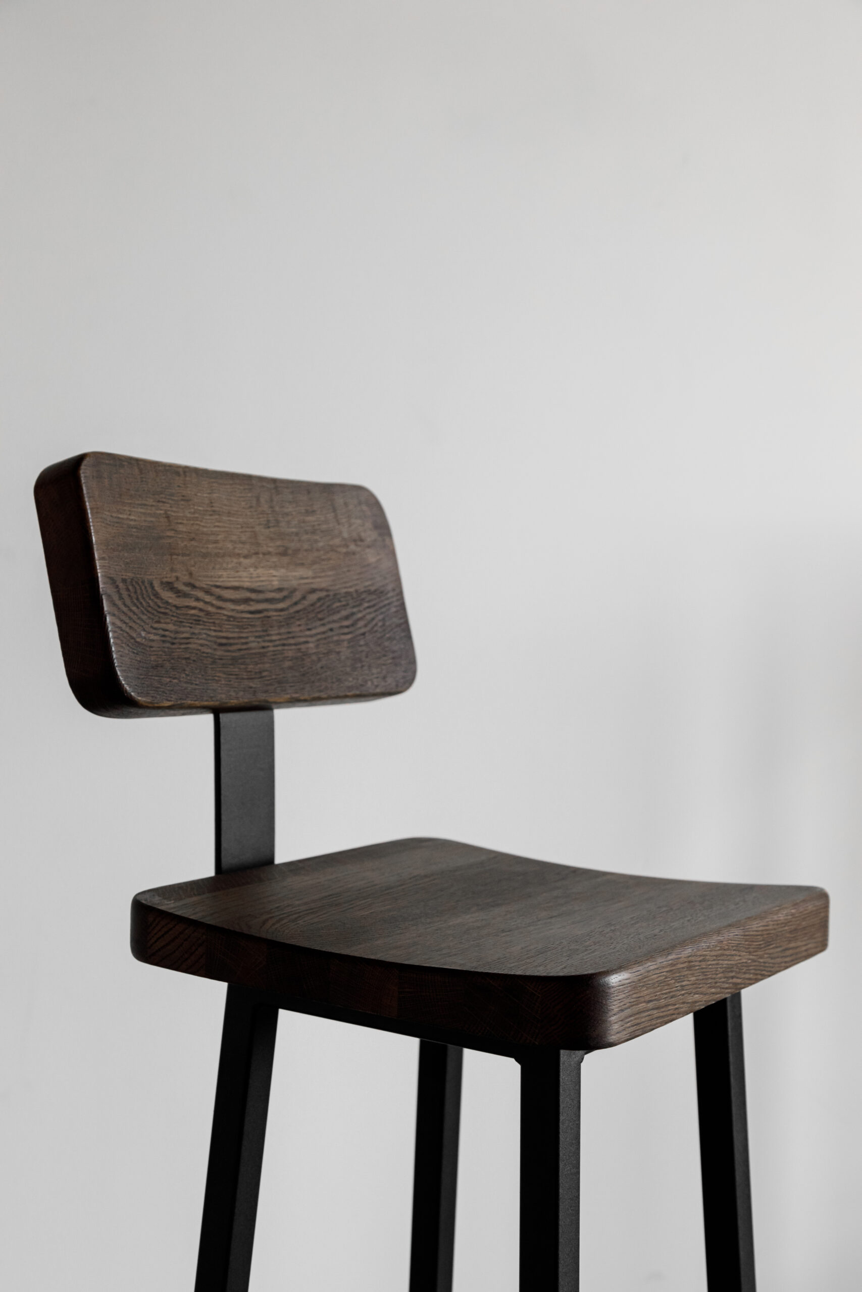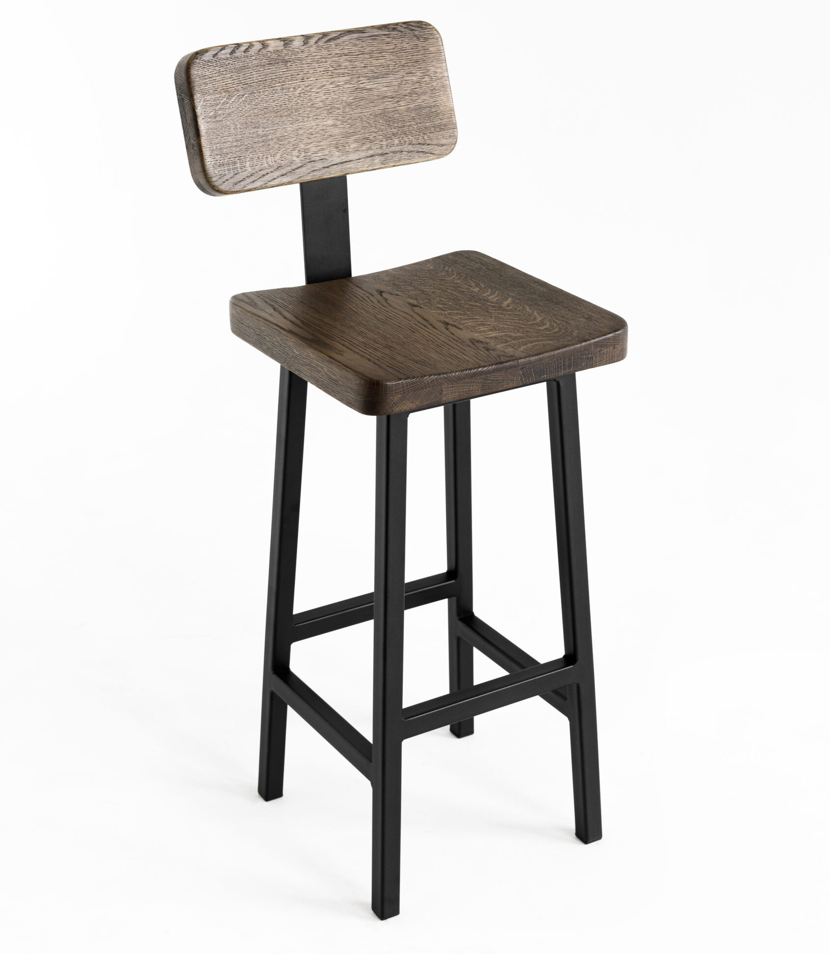 Полубарный стул со спинкой и вогнутым сиденьем. Материал: цельноламельный массив дуба.