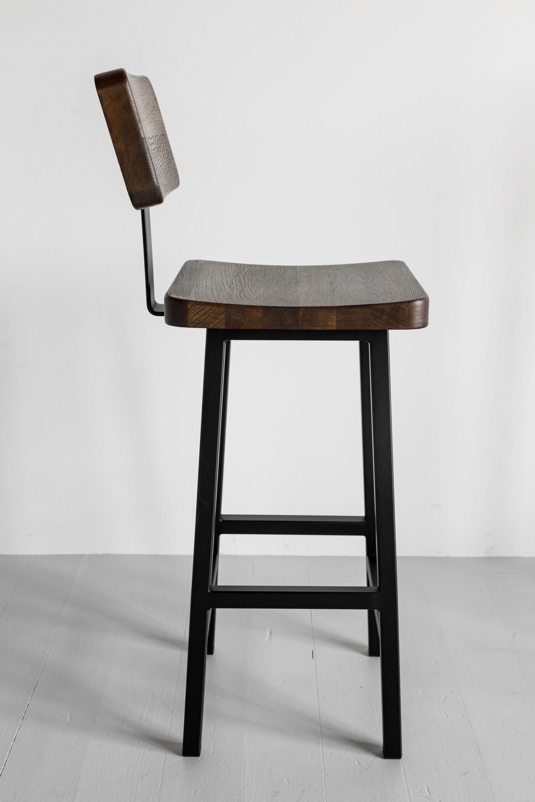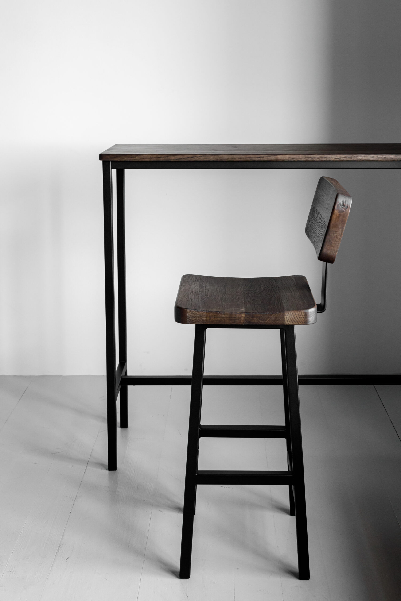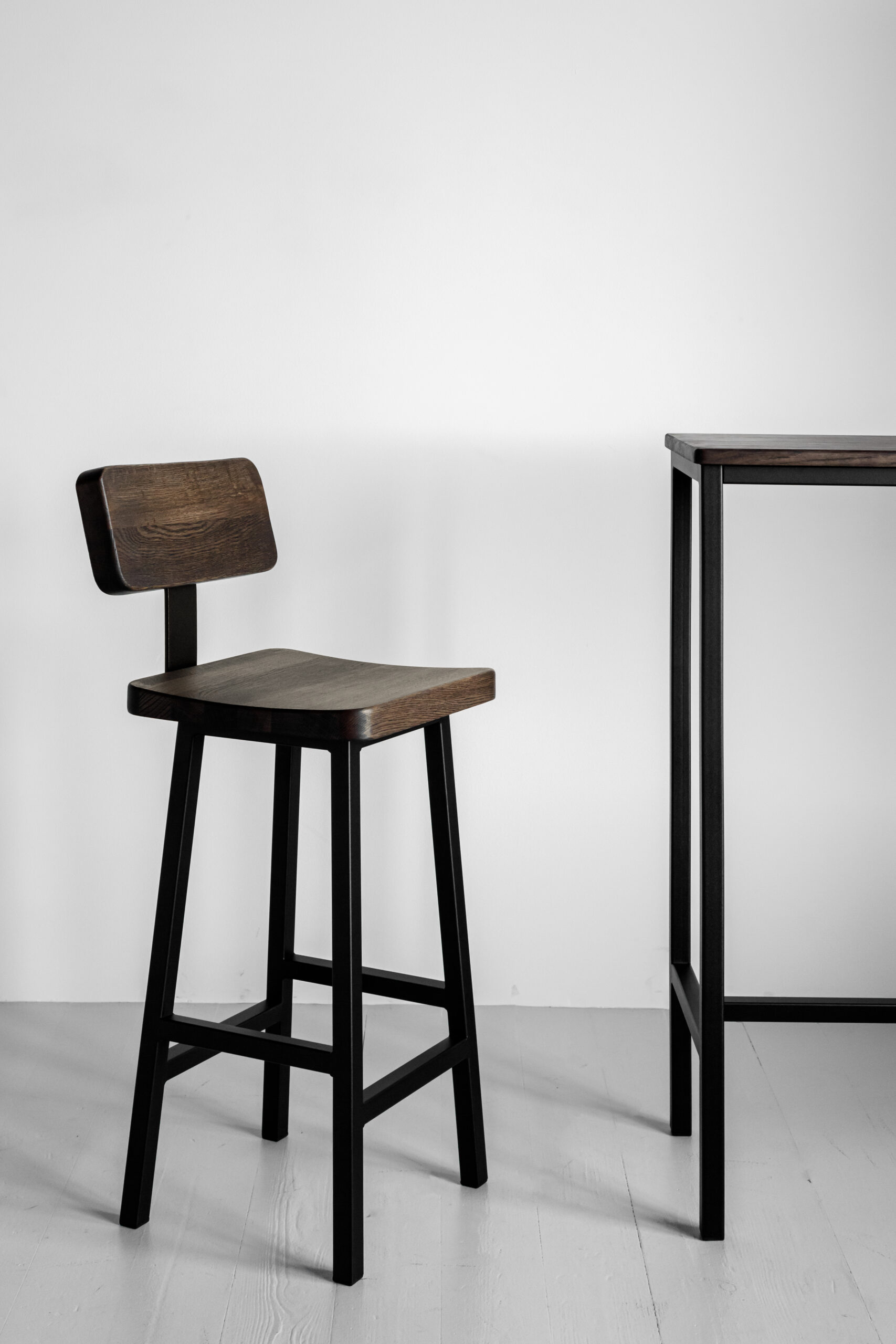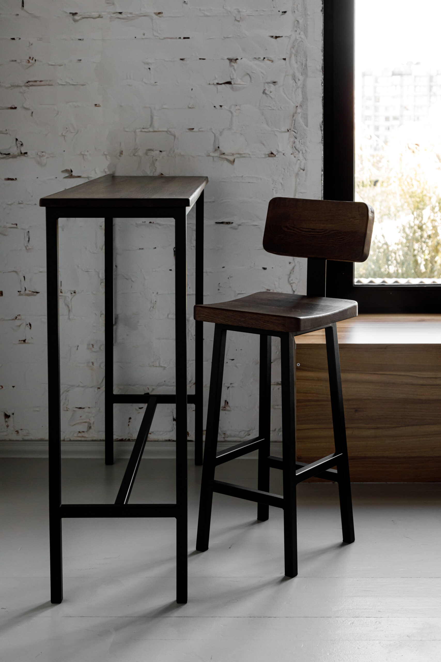 Дубовый барный стул со спинкой для кухни высотой 65 (со спинкой 91 см). Стул может использоваться как в домашних условиях, так и в общественных местах, таких как бар, кафе, ресторан, клуб и офис. Сиденье из дерева имеет удобную вогнутую форму (углубление до 10 мм), что обеспечивает физиологически правильное и удобное положение тела.