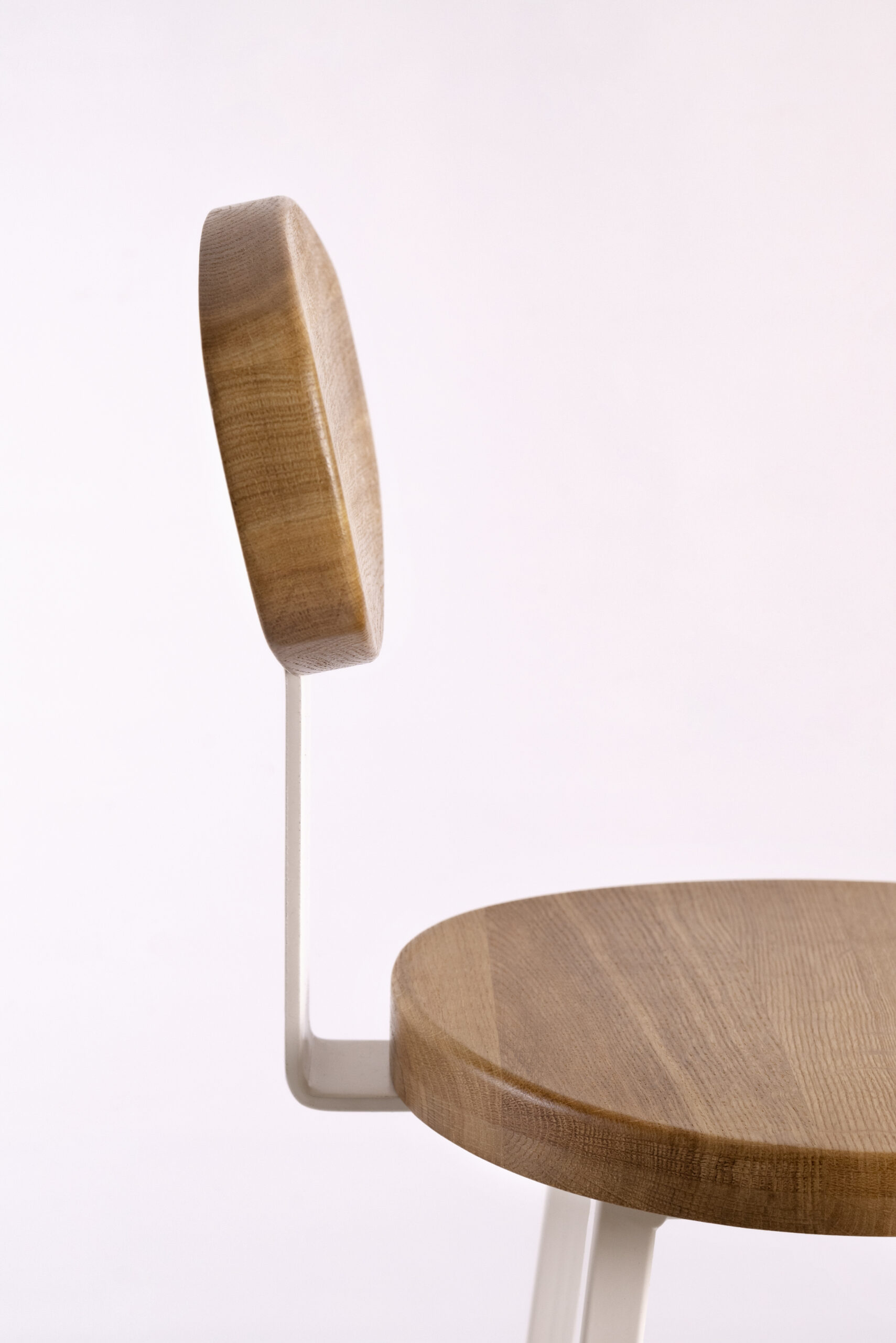 код 140889Полубарный стул со спинкой и вогнутым сиденьем. Материал: цельноламельный массив дуба, металл.