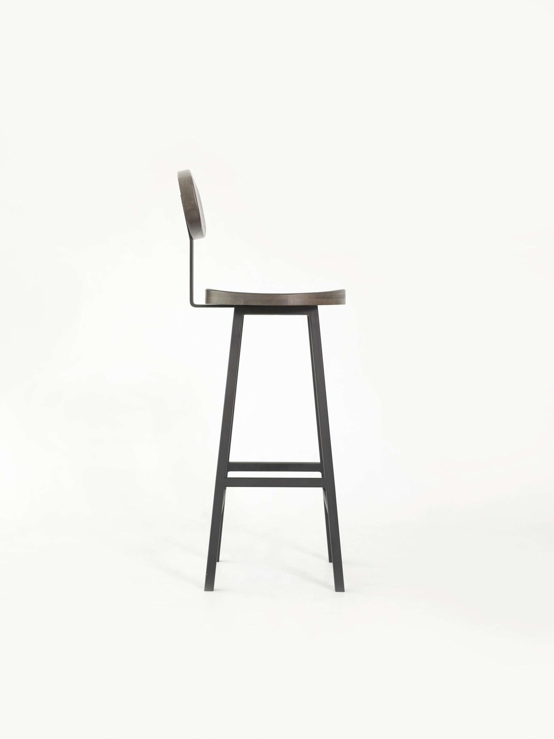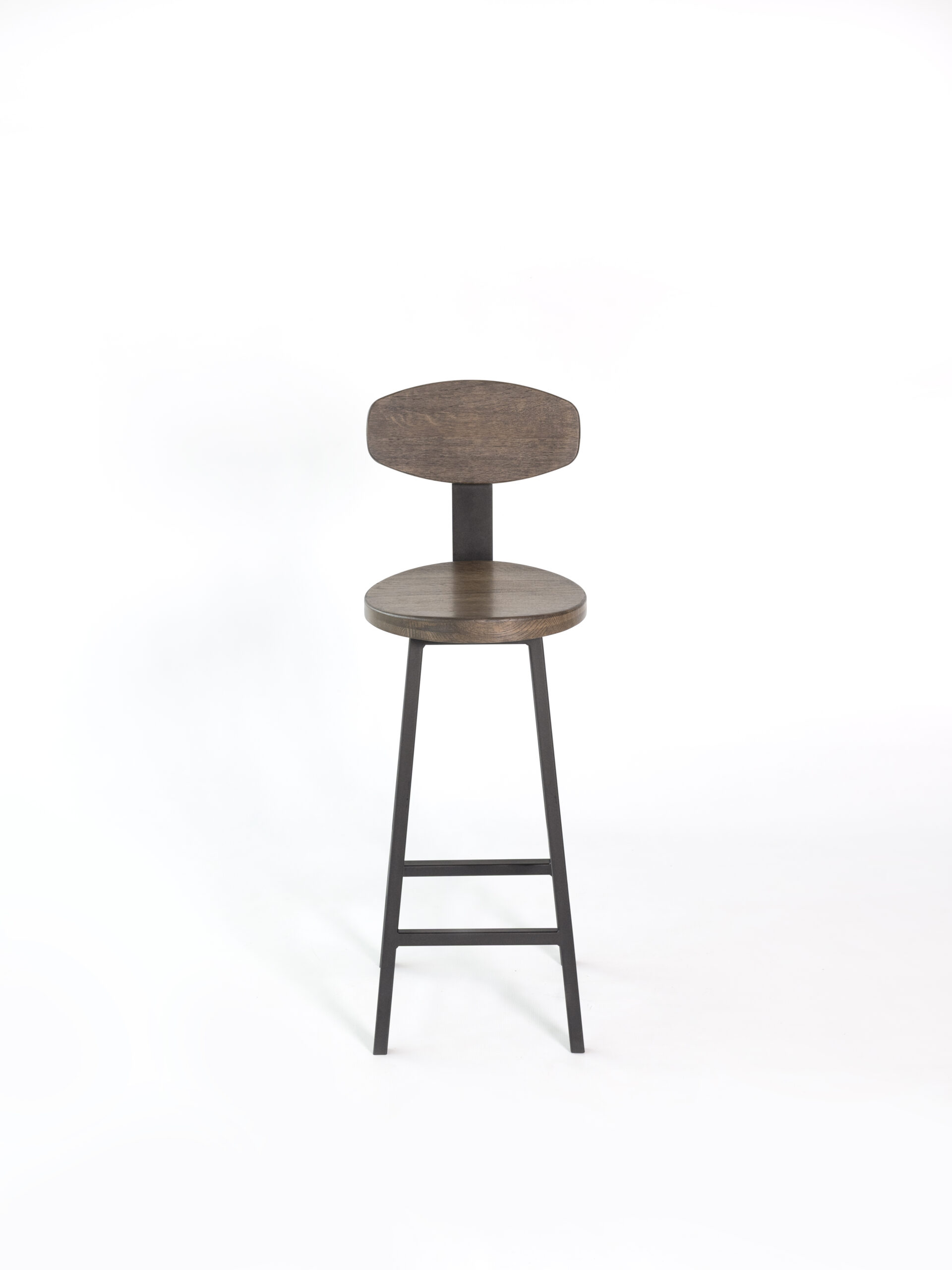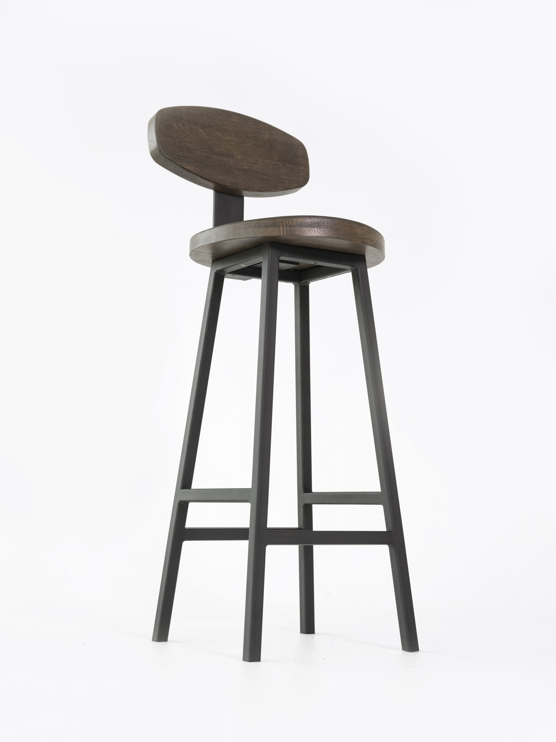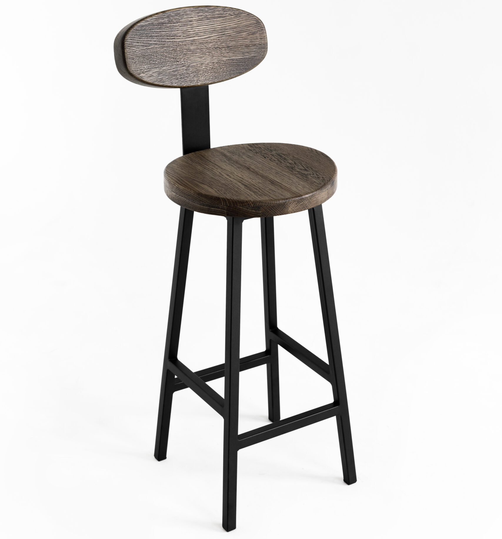 код 140888Полубарный стул со спинкой и вогнутым сиденьем. Материал: цельноламельный массив дуба, металл.