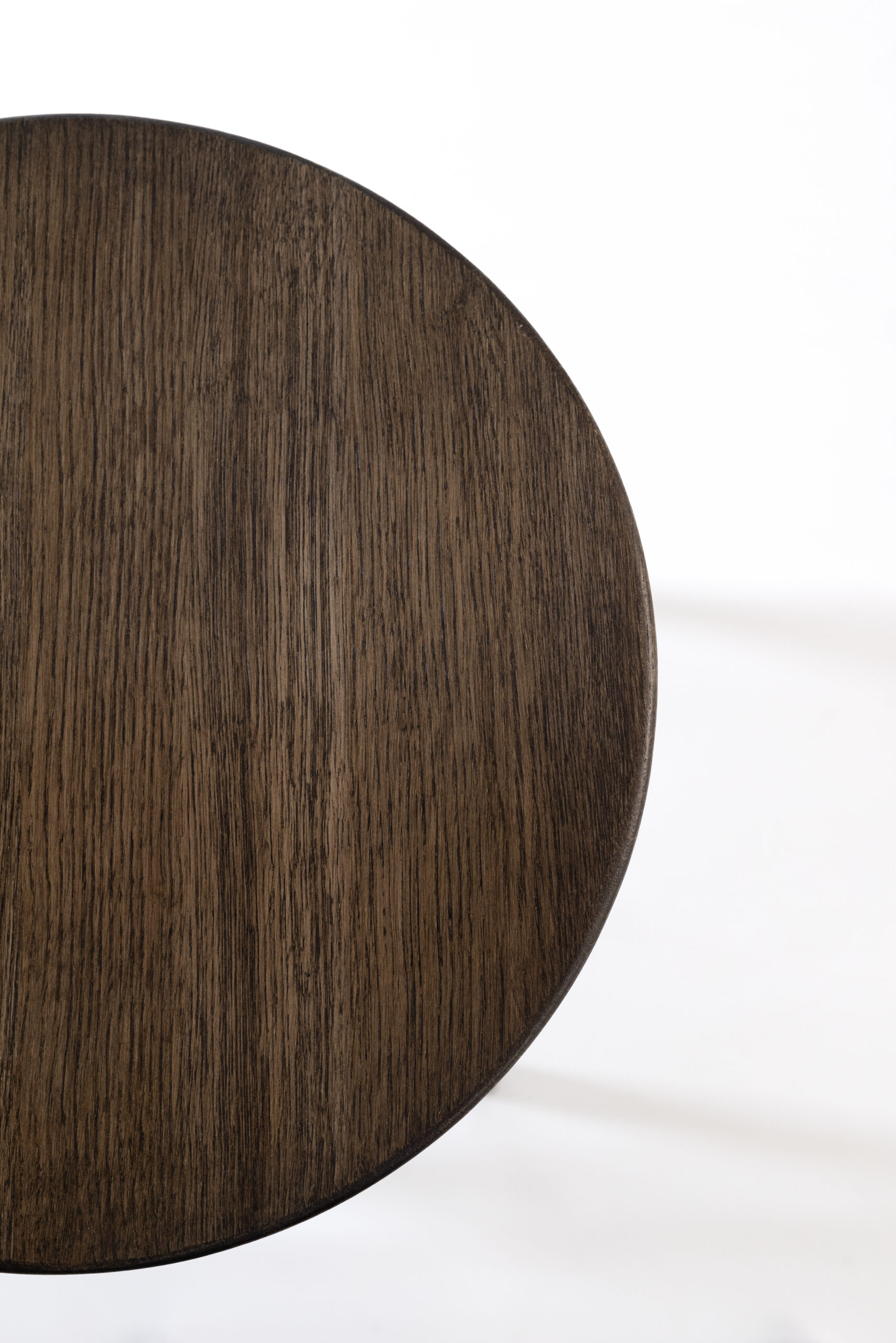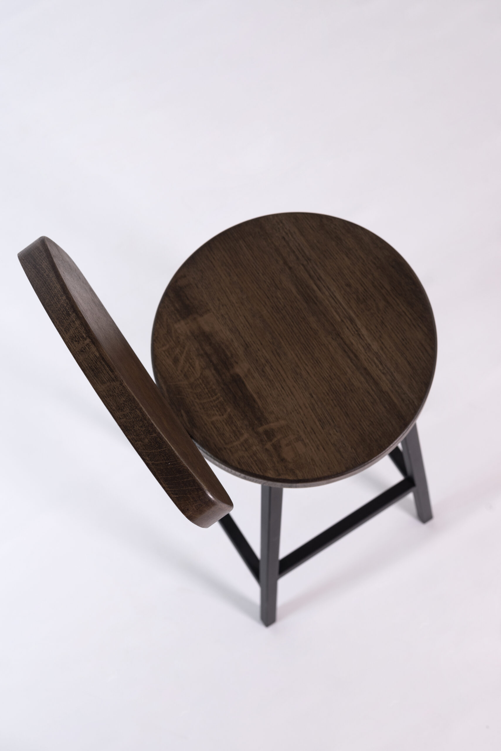 Полубарный табурет, высота 63 см. Материал: цельноламельный массив дуба, металл.