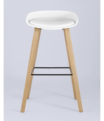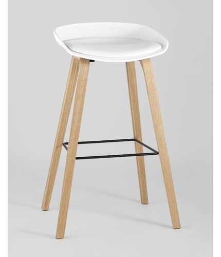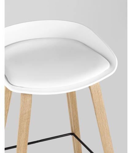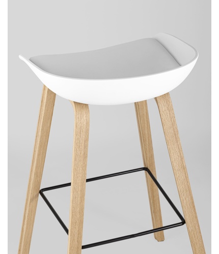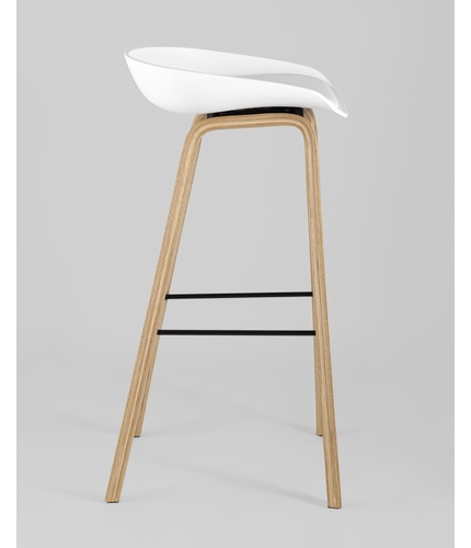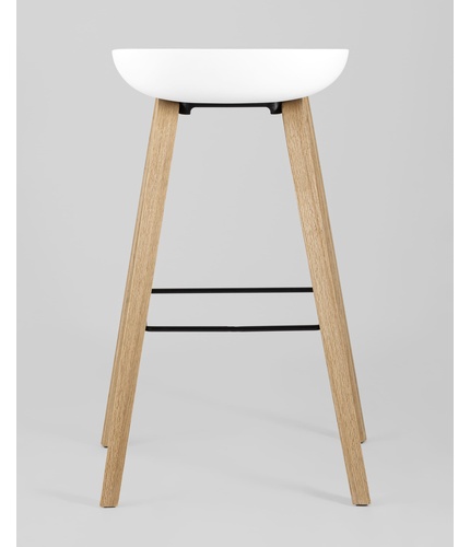 В дизайне модели «Либра» используется сочетание белого пластика и естественного оттенка натурального дерева – опоясывающая ножки опорная планка в тон сиденью уравновешивает цветовую комбинацию и подчеркивает модные геометрические формы барного стула. Высота соответствует стойке стандартной высоты.