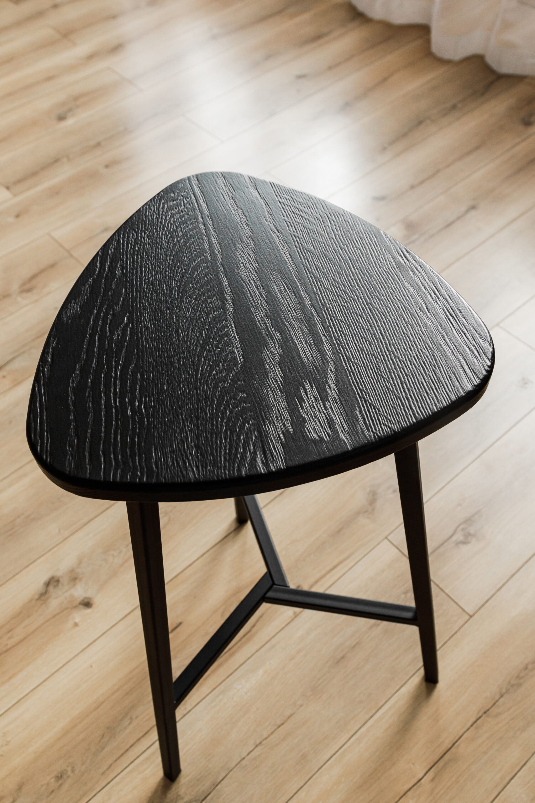 Полубарный табурет с вогнутым сиденьем. Материал: цельноламельный массив дуба, металл.