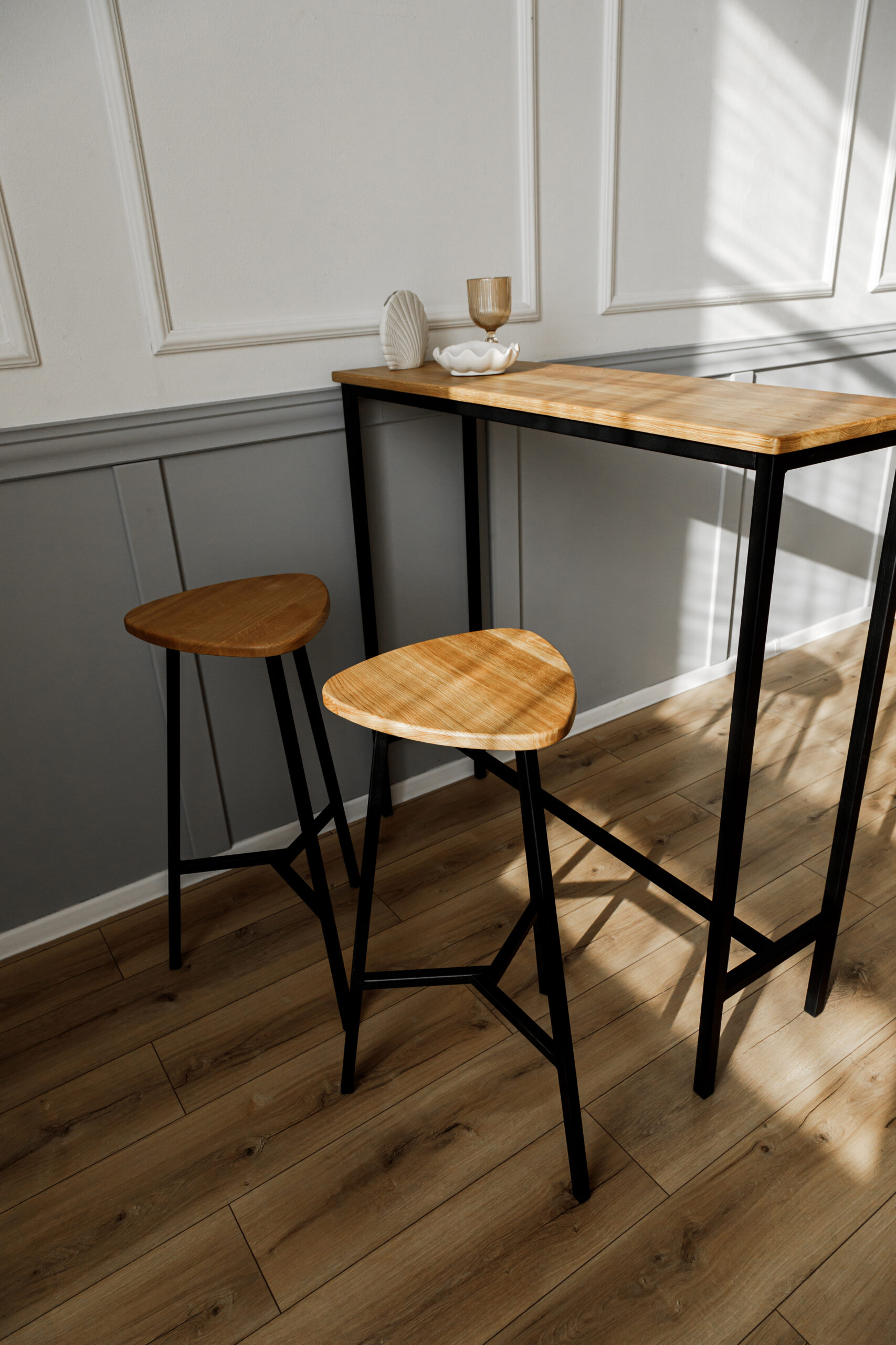 Полубарный деревянный табурет, высота 65 см. Материал: цельноламельный массив дуба.