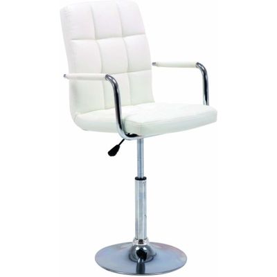 Барное кресло «Росио» оборудовано удобными дуговыми хромированными подлокотниками с накладками. Сиденье обтянуто искусственной кожей и представлено в двух вариантах цвета: белый, черный.