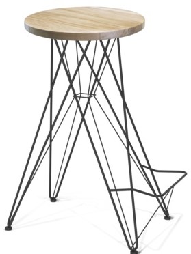Изящный и визуально легкий барный стул. Сиденье выполнено из массива дуба и имеет ярко выраженную древесную фактуру. Диаметр сиденья 35 см, толщина сиденья 25 мм. Надежный металлический каркас покрыт специальной ударопрочной порошковой краской. Барный табурет подойдет к стилю лофт или эко-стилю в помещении баров и кафе. Максимальная нагрузка 200 кг.