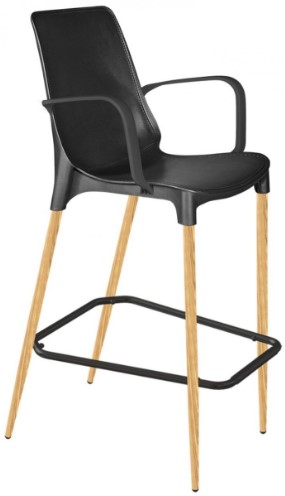 Удобный современный барный стул выполнен из прочных материалов, которые не подвержены воздействию погодных условий. И возможность их хранения при температуре от -15 до +40 градусав. Сидушка стула выполнена из полипропилена с выделкой "под кожу" и это придает ей более эстетический вид. Ножки металлические в пленке пвх с фактурой "под дерево". Стул барный с подлокотниками станет удобным местом для отдыха в кафе, на фуд-корте и дома.