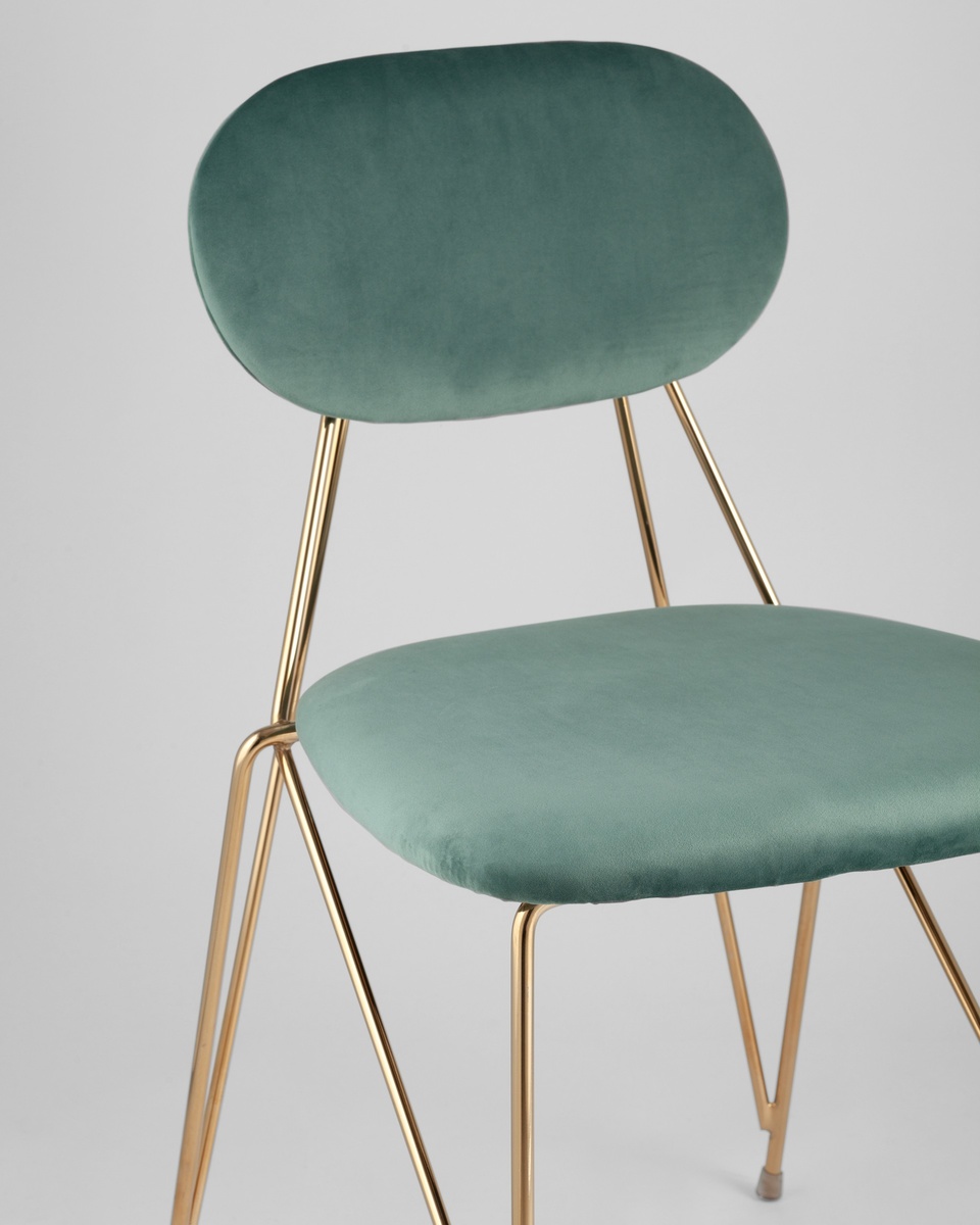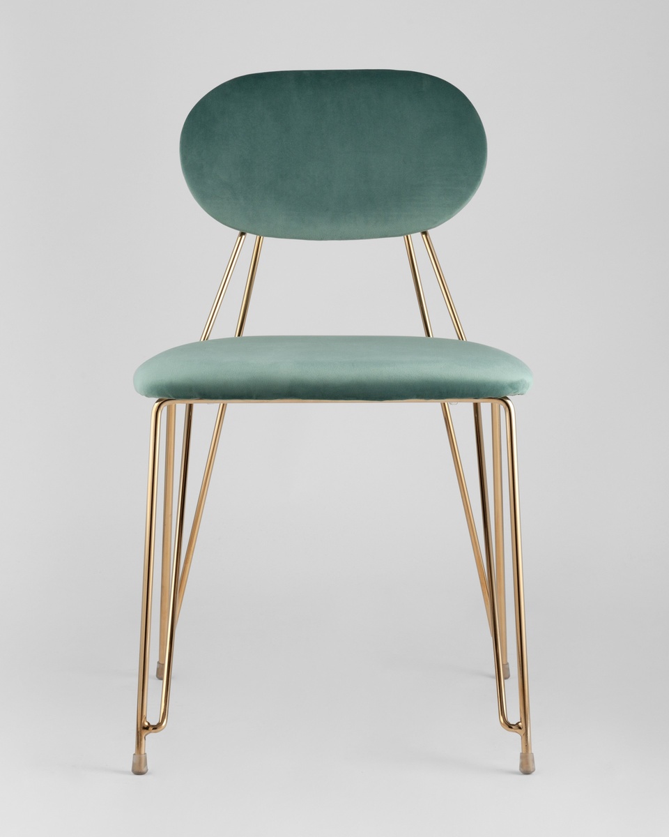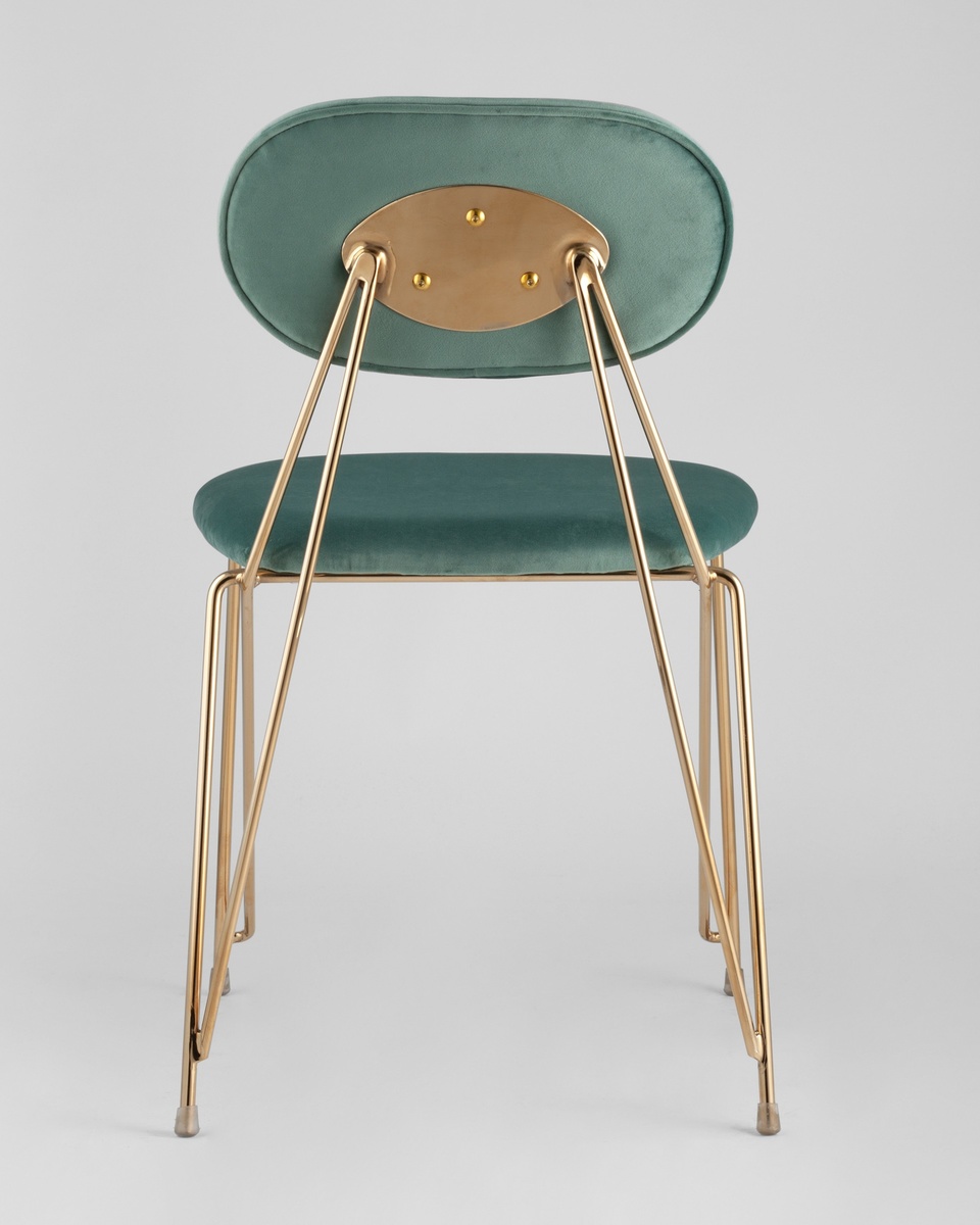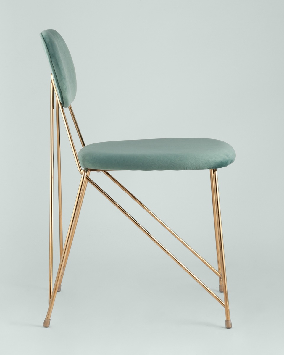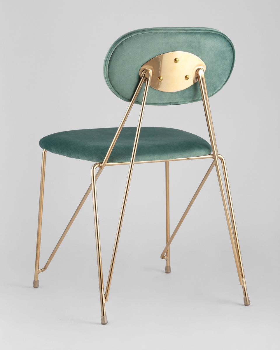 В качестве обивки используется мягкий велюр. Украшает модель металлический каркас золотого цвета. Широкое сиденье обеспечивает удобную посадку и уют.