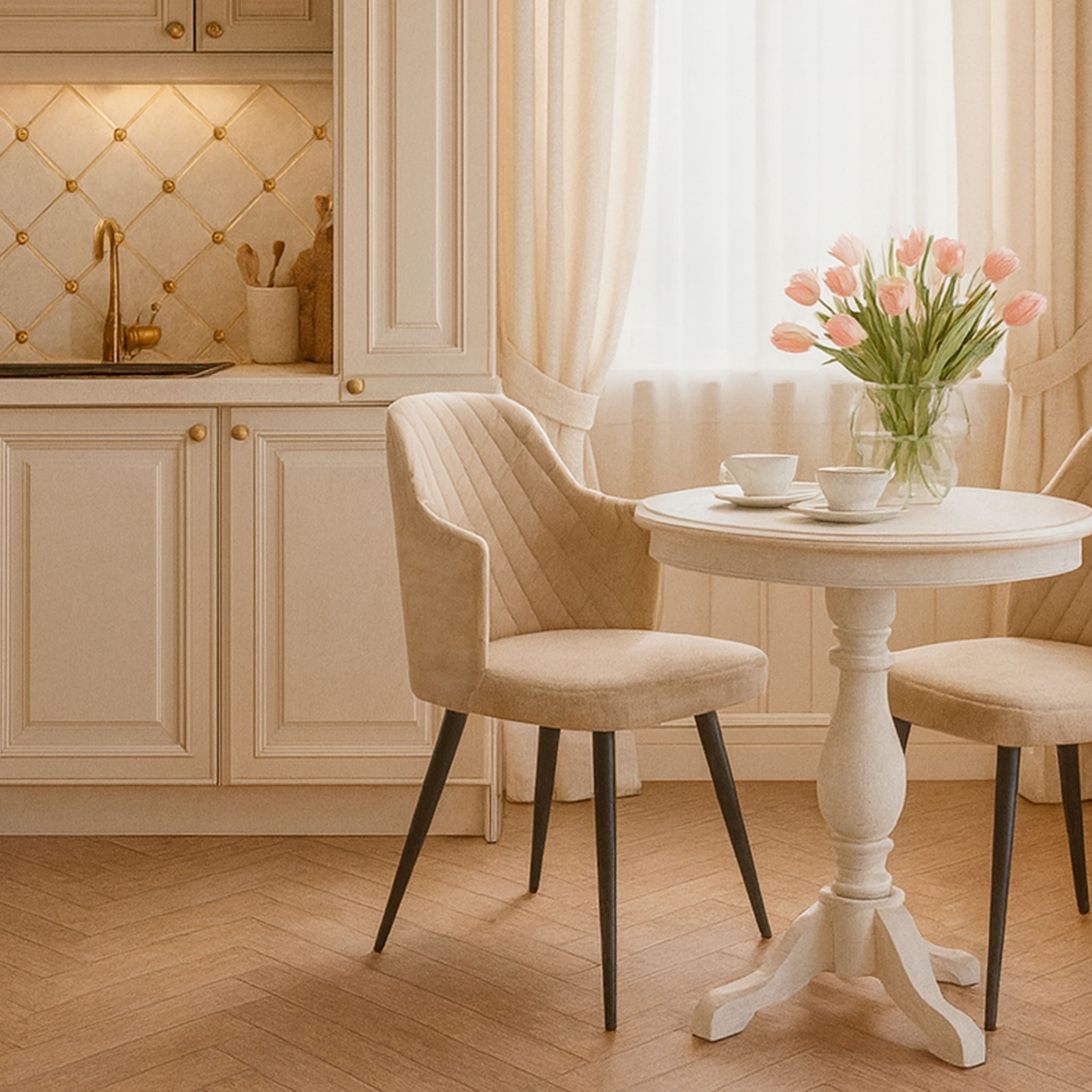 Габариты: 446х540х935 мм. Материал: каркас - массив ольхи, сиденье/спинка - поролон, ткань.