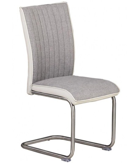 Стул DC225 как будто парит в воздухе на С-образной раме металлического каркаса. Сиденье и спинка в продольной простежке обиты тканью и дополнены экокожей по кромке.