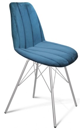 Современный стул на прочном металлическом каркасе. Каркас изящный, но крепкий и усилен дополнительными прутами. На концах ножек есть платиковые накладки, которые предотвращают царапанье напольных покрытий. Обивка из микровелюра приятная на ощупь и в то же время очень прочная. Изогнутая сидушка и спинка имеет эргономический изгоб для долгого времяпрепровождения. Стулья можно использовать для домашней кухни и для заведений общественного питания.