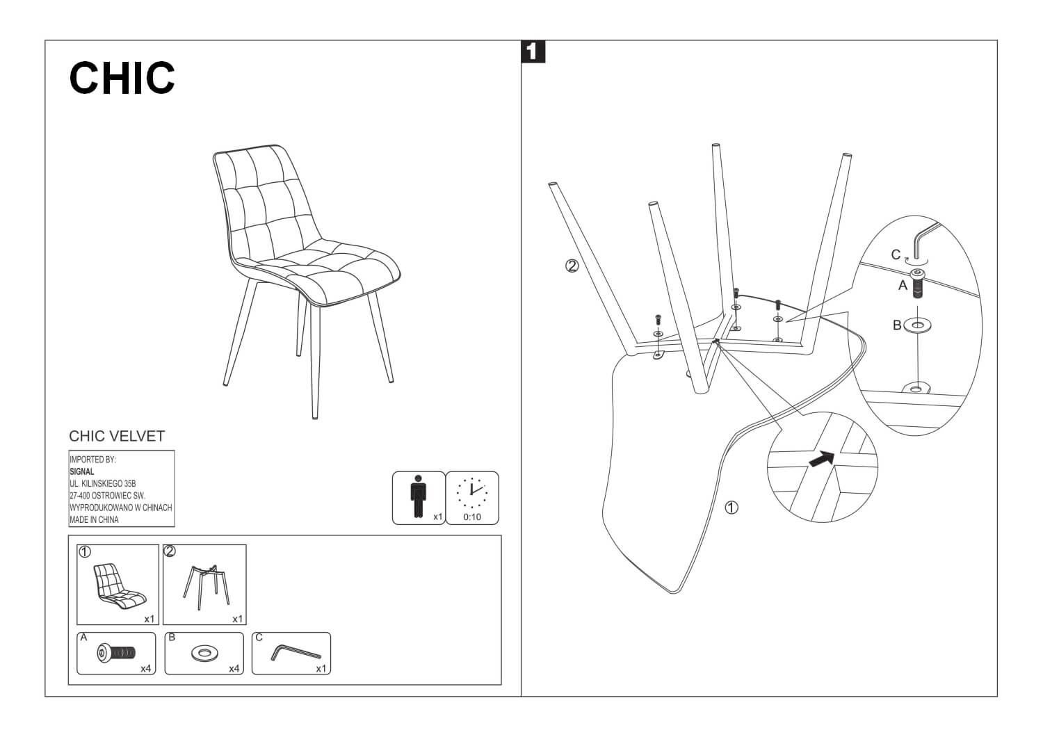 Стул кухонный «Signal CHIC Velvet Bluvel 52» (античный розовый/черный)