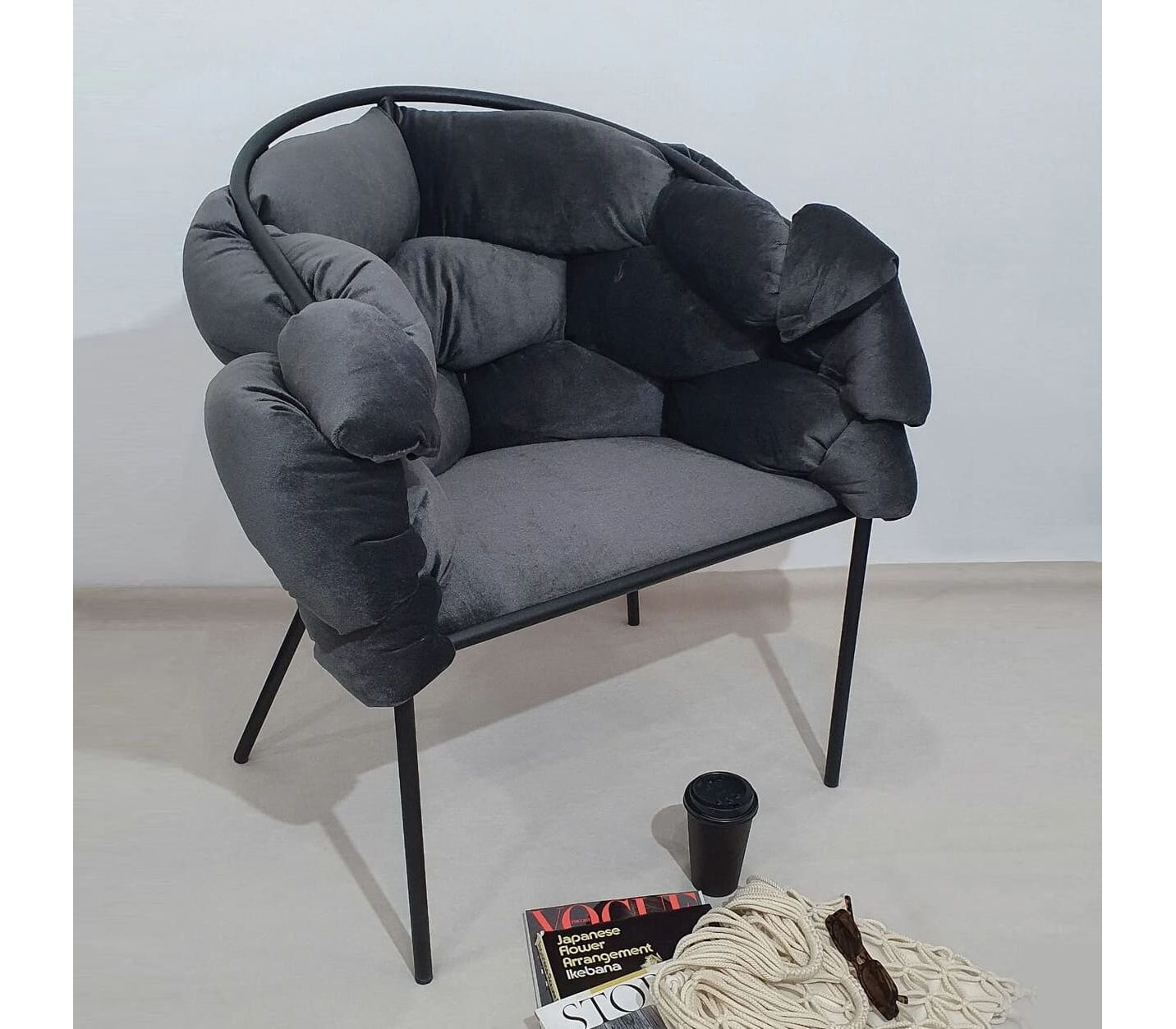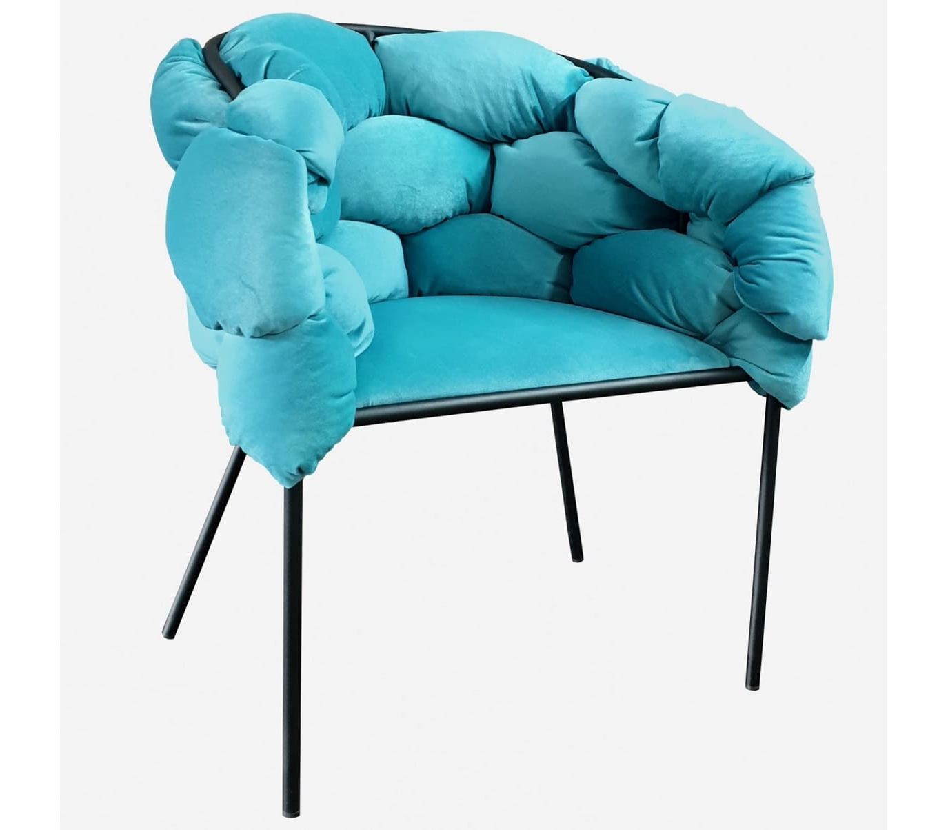 Стул имеет необычную форму каркаса с переплетёнными мягкими элементами. Стул прекрасно подходит для уютного времяпрепровождения. Преимуществом данной модели являются надежность и удобство. Стул предназначен для гостиной, столовой, чилаут зон, салонов красоты.