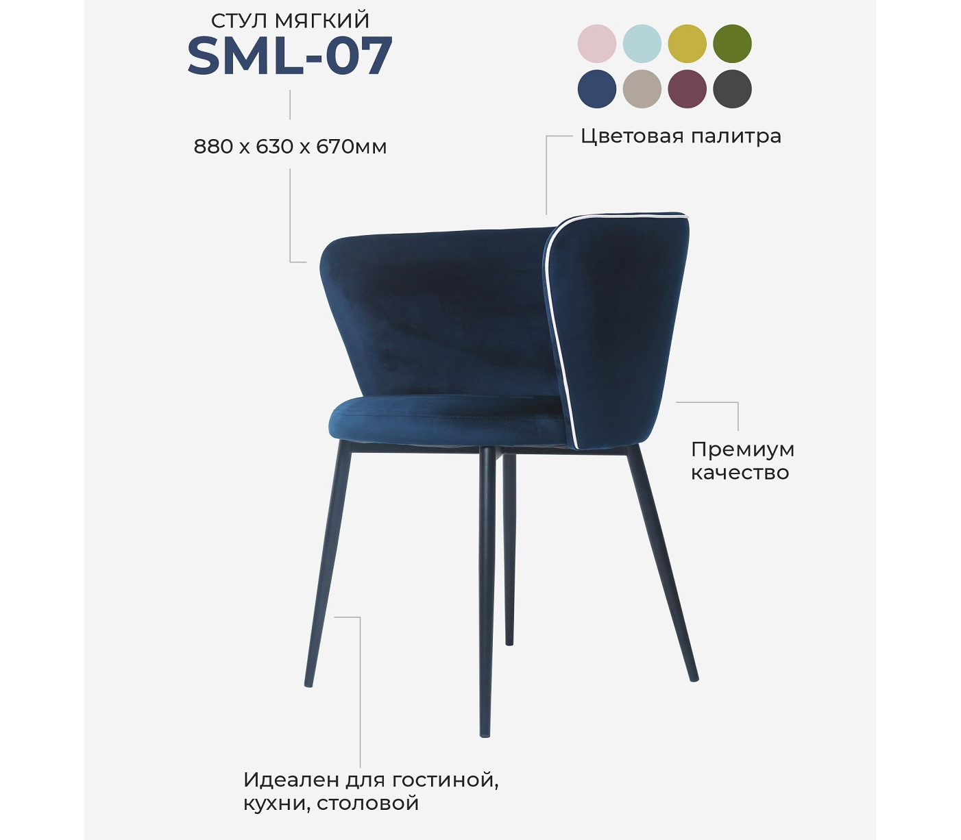 Стул кухонный SML-07, изготавливается под заказ. Можно выбрать цвет каркаса и материал обивки.