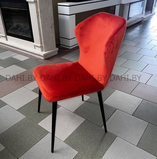 Стул выполнен на металлокаркасе в современном стиле с конусообразными ножками и удобной эргономичной спинкой. Обивка стула может быть выполнена из велюра, бархата, искусственной кожи. Стул предназначен для оформления интерьера в гостиной, столовой, кафе и баров.