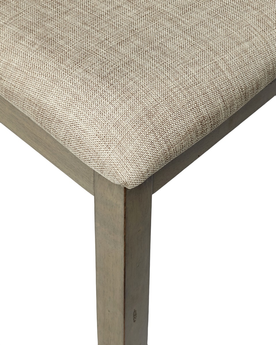 Каркас стула выполнен из массива гевеи с винтажной обработкой, потертостями, сиденье обито тканью светло-бежевого цвета.