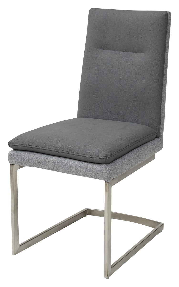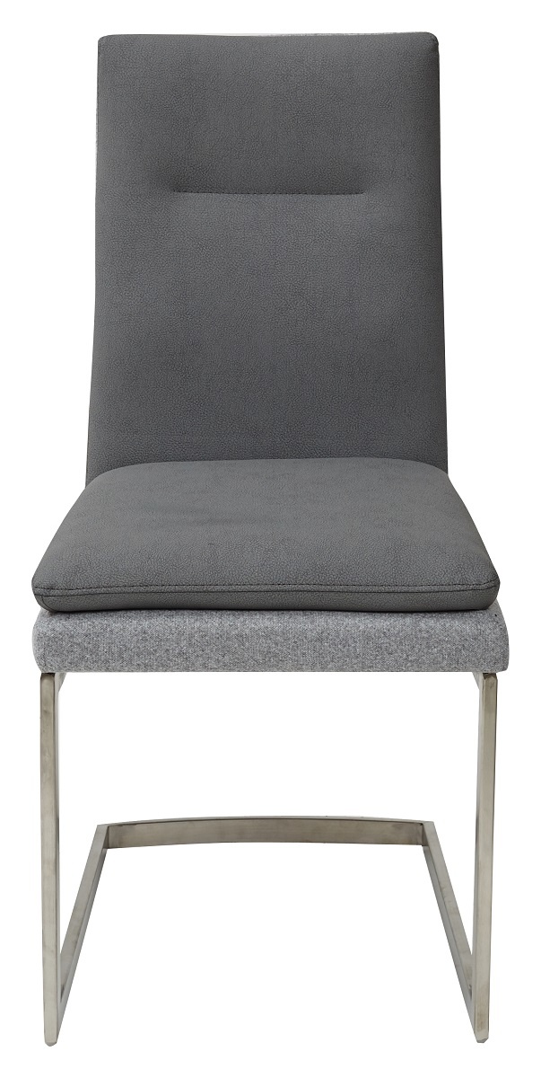 Обивка - сиденье из экокожи под нубук темно-серого цвета со светло-серой спинкой из ткани.